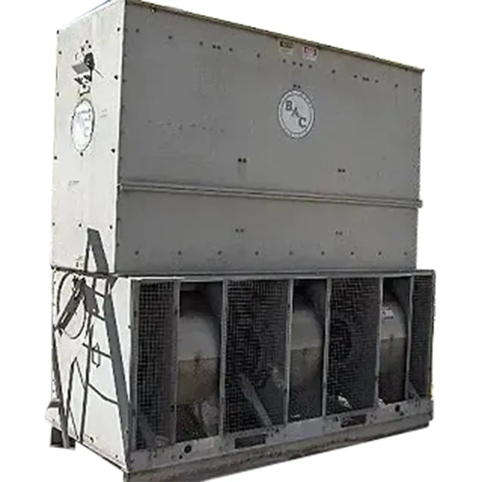Torre de enfriamiento de Baltimore Aircoil Company: 75 toneladas. Modelo VTO-75-KC. Motor de 10 HP, 230/460 V. La tonelada nominal se define como 3 GPM de agua enfriada de 95 °F a 85 °F con una temperatura de bulbo húmedo de entrada de 78 °F.