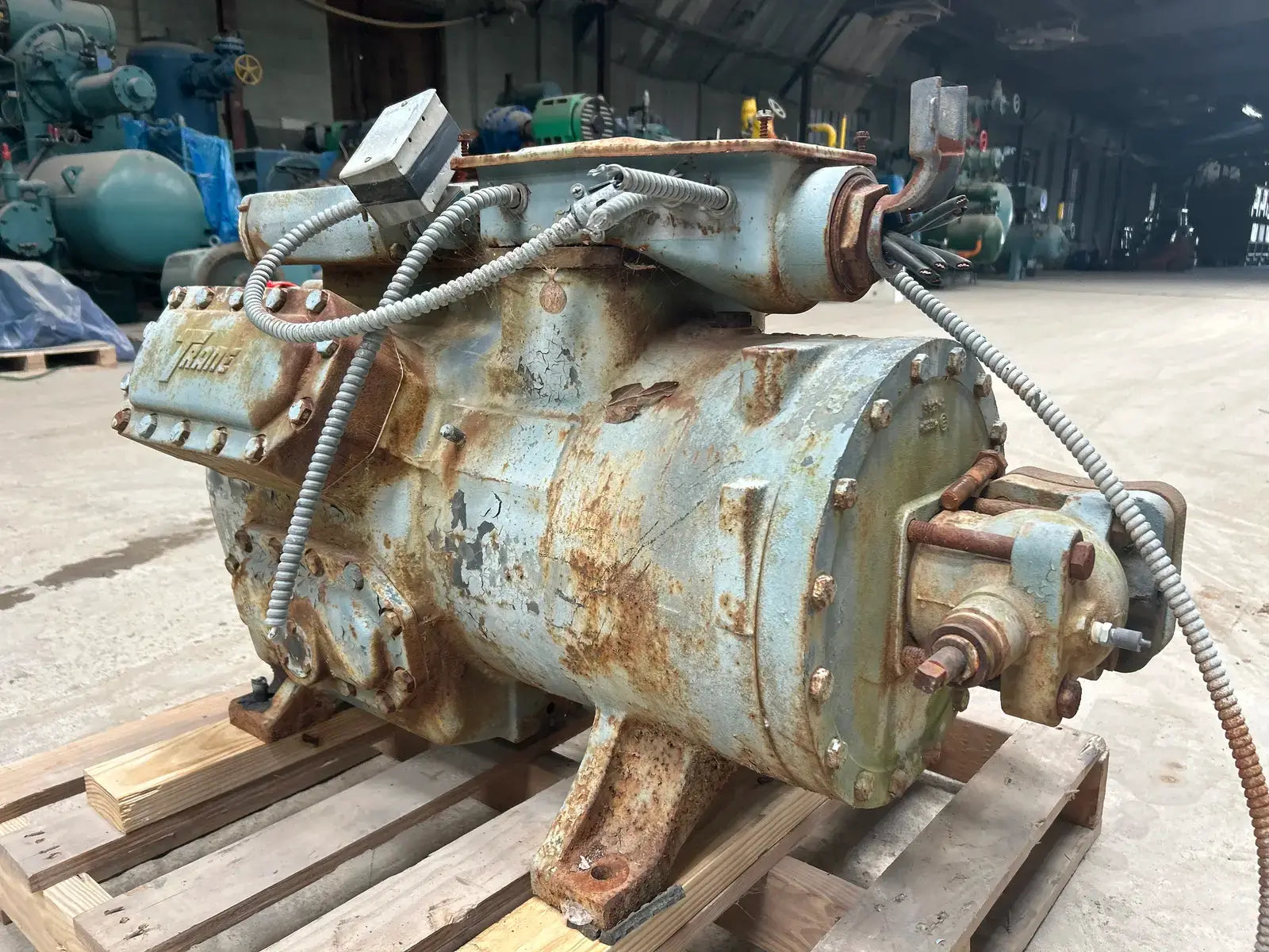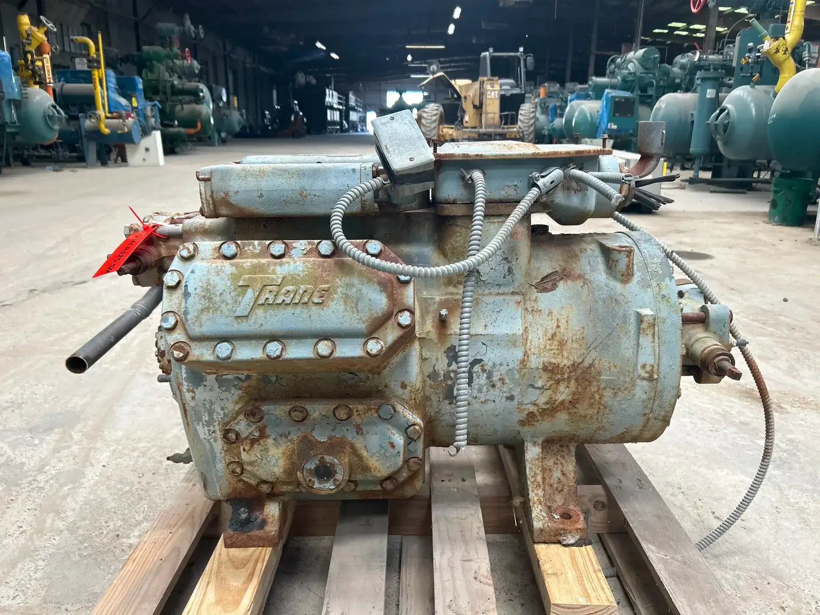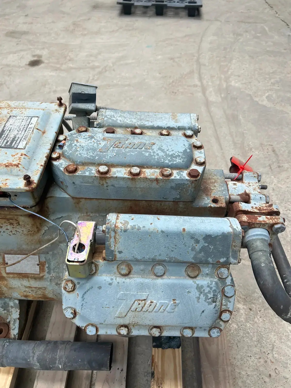 Compresor semihermético Trane. Modelo: CRHR5004HAT. Número de serie: 466033.755. Alimentación: 460 voltios, trifásica, 60 Hz. Capacidad (toneladas): 50. Refrigerante: R-22.