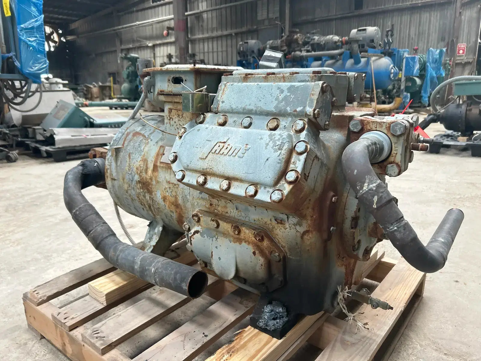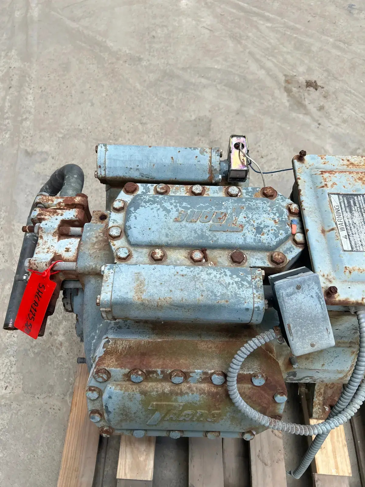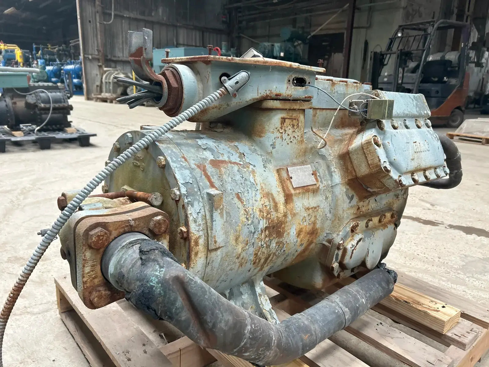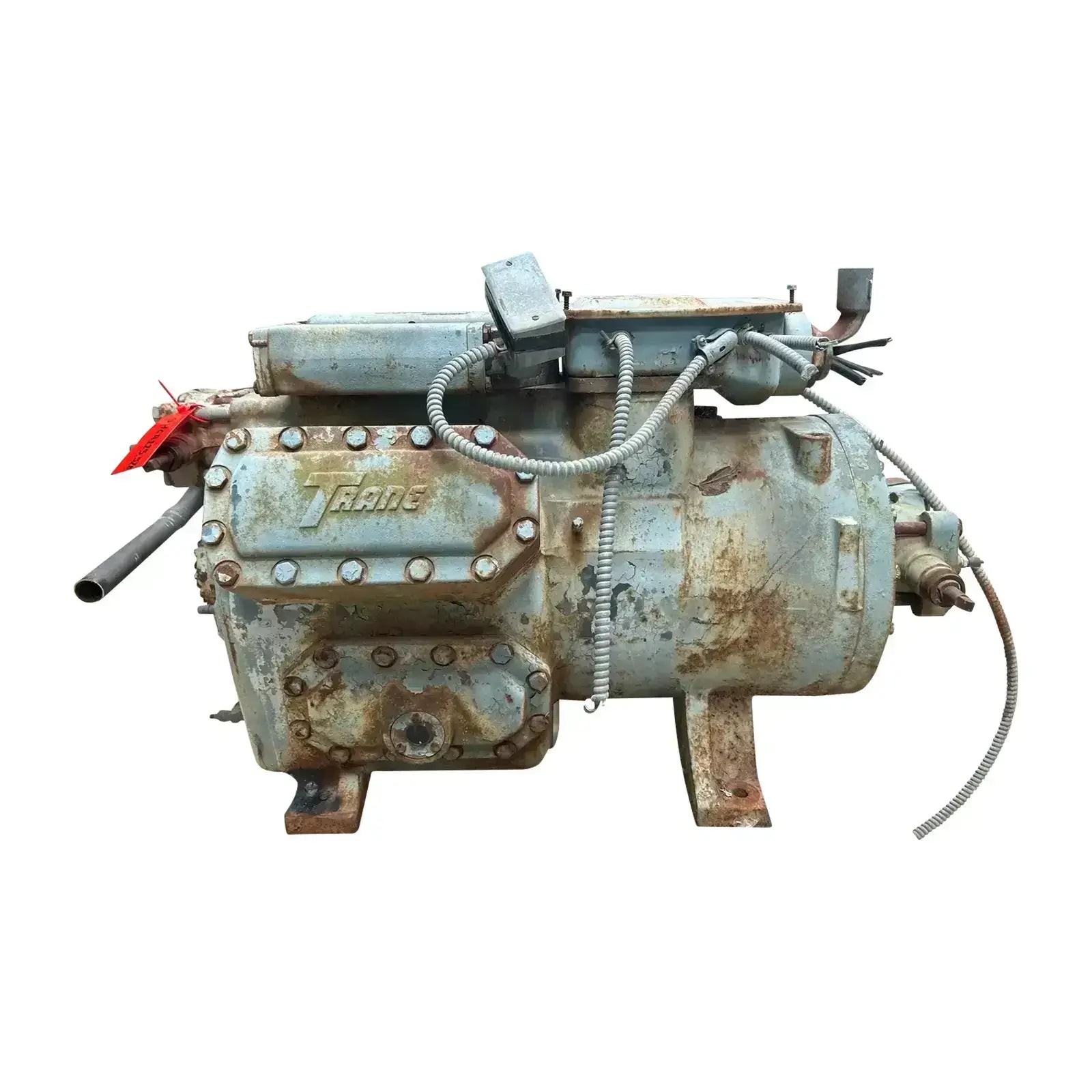 Compresor semihermético Trane. Modelo: CRHR5004HAT. Número de serie: 466033.755. Alimentación: 460 voltios, trifásica, 60 Hz. Capacidad (toneladas): 50. Refrigerante: R-22.