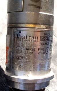 Transmisor de presión sanitaria Viatran Corporation. Modelo: 3535CN2HDA20. S/N: 14949390. Rango: 0-100 pulgadas WCG. Calibración: 29,81 pulgadas WCG. Máx. presión: 300 pulg. WCG. Voltios máximos: 40. Dimensiones totales: 1-1/2 pulgadas de largo x 1-1/2 pulgadas de ancho x 7 pulgadas de alto.