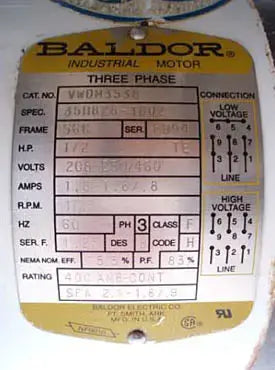 - Fabricante de motores: Baldor