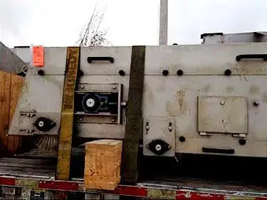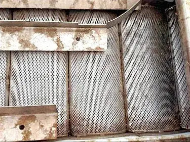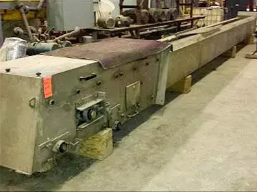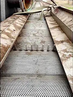 Transportador de deshidratación de acero inoxidable Kusters-Water. Modelo: Pantalla de filtro FSM. Diseño de pantalla de filtro perforada con limpiador de cepillo giratorio. También tiene dedos de elevación para piezas más grandes. Diseñado para usarse en una posición inclinada de 50, 60 o 75 grados. Construcción de acero inoxidable. Las aguas residuales fluyen a través de la pantalla mientras los contaminantes se capturan y eliminan.