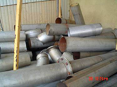 Tubería de acero inoxidable 304 de 10,5 pulg., 8,5 pulg. y 4 pulg. Eliminado de Tropicana. 10,5 pulg. Aproximadamente 180 pies, peso estimado 12 libras por pie, piezas de 6 a 9 pies de largo, incluye codos y bridas. Tubo de 8,5 pulg. Aproximadamente 180 pies, peso estimado por pie 10 libras, piezas de 6 a 9 pies de largo, incluye codos y bridas. Tubería de 4 pulgadas. Peso aproximado por pie 4 libras, aproximadamente 1000 pies, 350 pies en piezas de 6 a 9 pies de largo y el resto en piezas de 20 a 40 pies de largo.