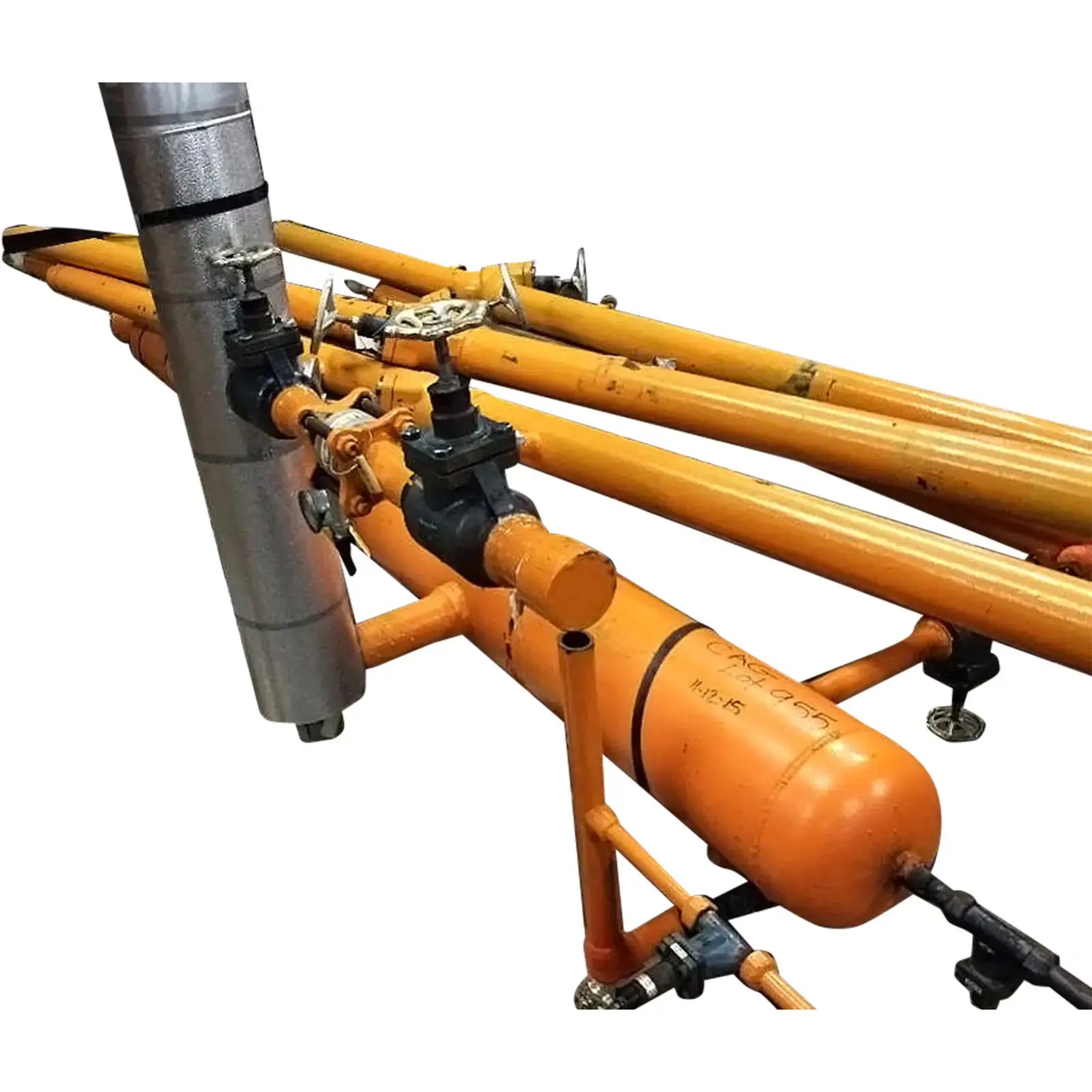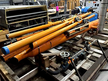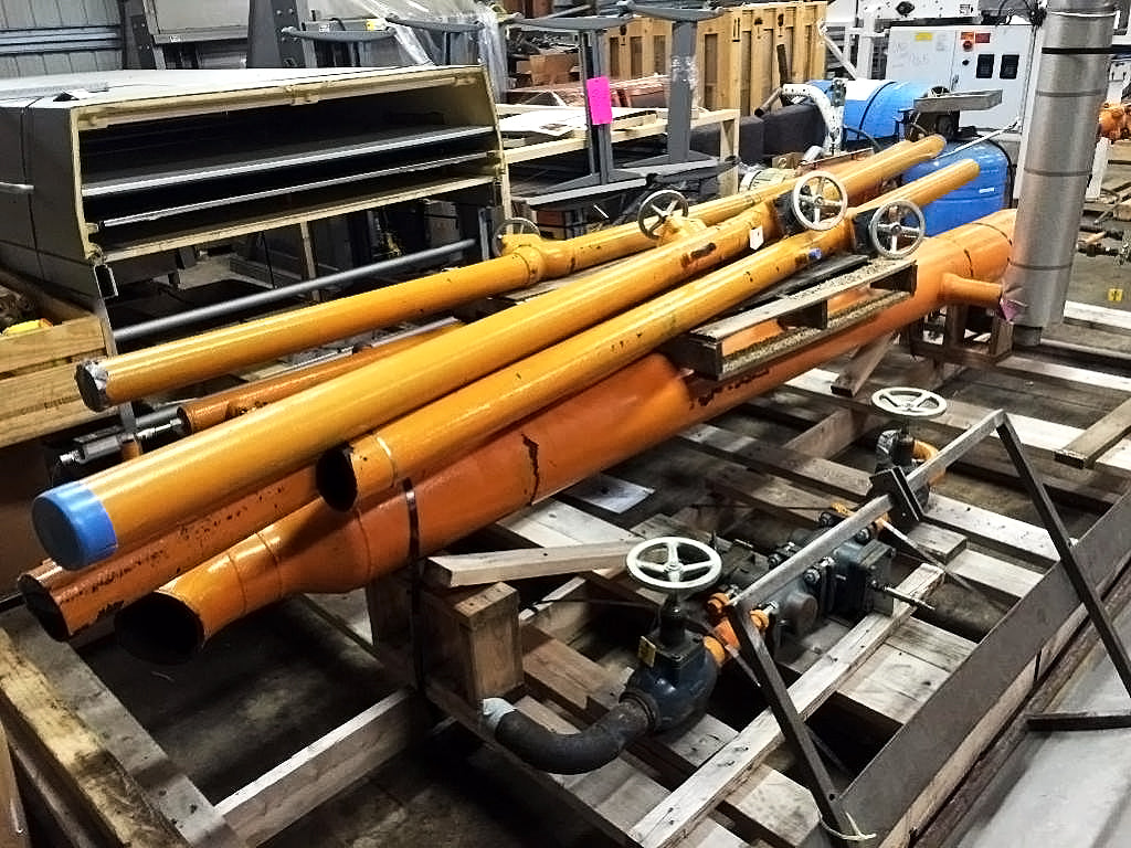 Tubería de refrigerante amoniaco con válvulas.