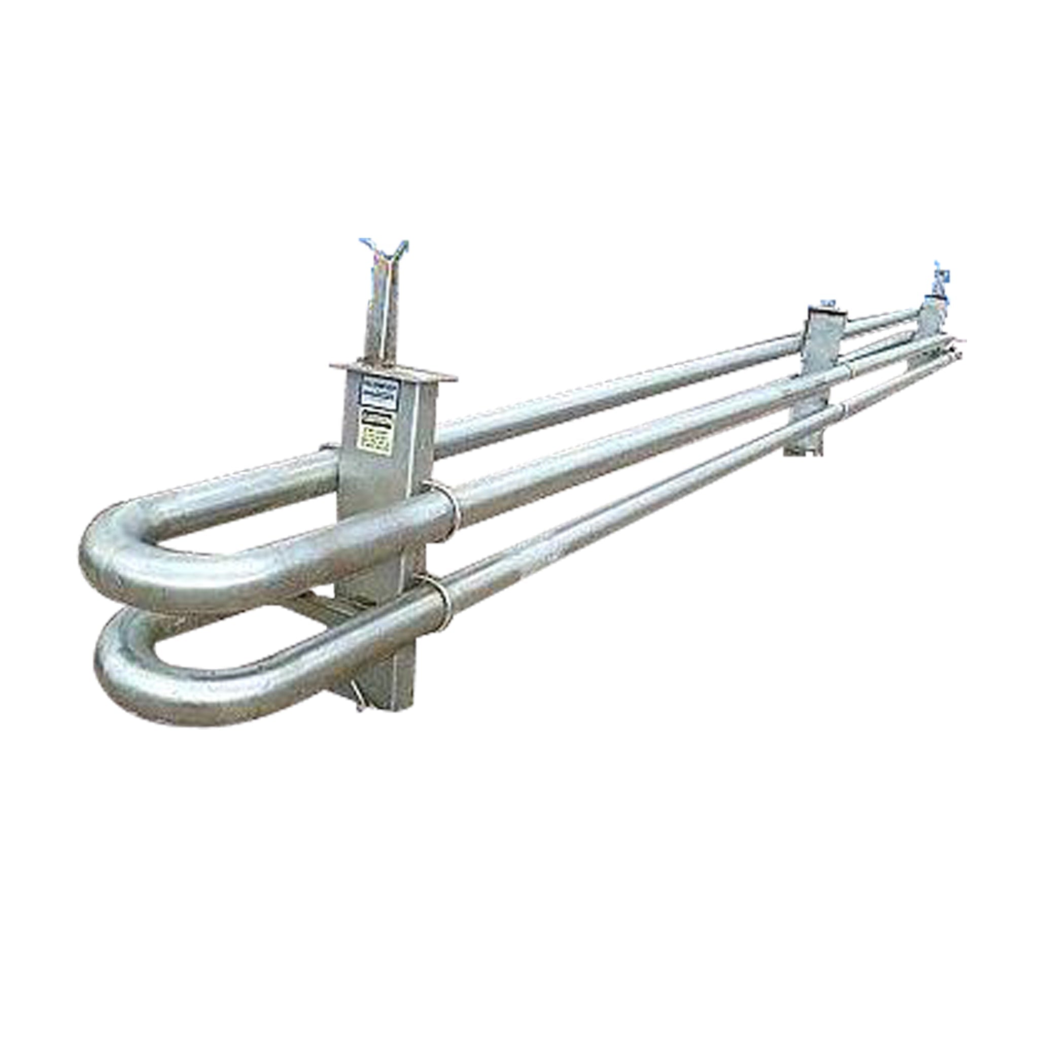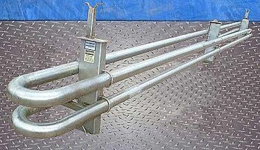 Tubo de retención de acero inoxidable Feldmeier: 30 galones. Dimensiones del tubo: (4) 3 pulgadas de diámetro x 18 pies 9 pulgadas de largo. Diámetro interior: 2,85 pulgadas. Espesor: 0,15 pulgadas. Entradas/salidas: 3 pulgadas de diámetro. Ajuste de línea 'S'. Dimensiones totales: 20 pies de largo x 15 pulgadas de ancho x 30 pulgadas de alto.