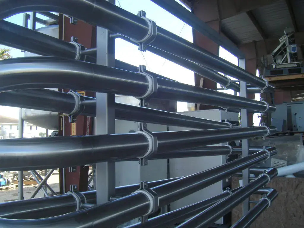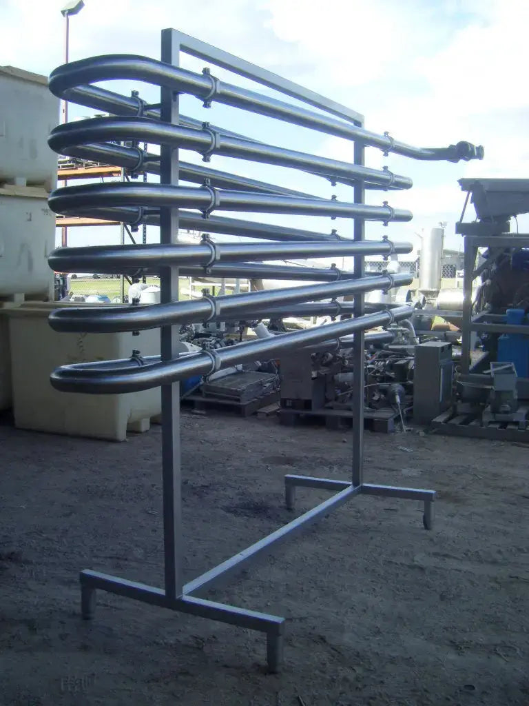 Tubo de sujeción de acero inoxidable. Entradas/salidas: (2) ACME de 3 pulgadas. (1) 3 pulgadas FNPT. Dimensiones totales: 10 pies 8-1/2 pulgadas de largo x 3 pies 1/2 pulgadas de ancho x 7 pies 6 pulgadas de alto.