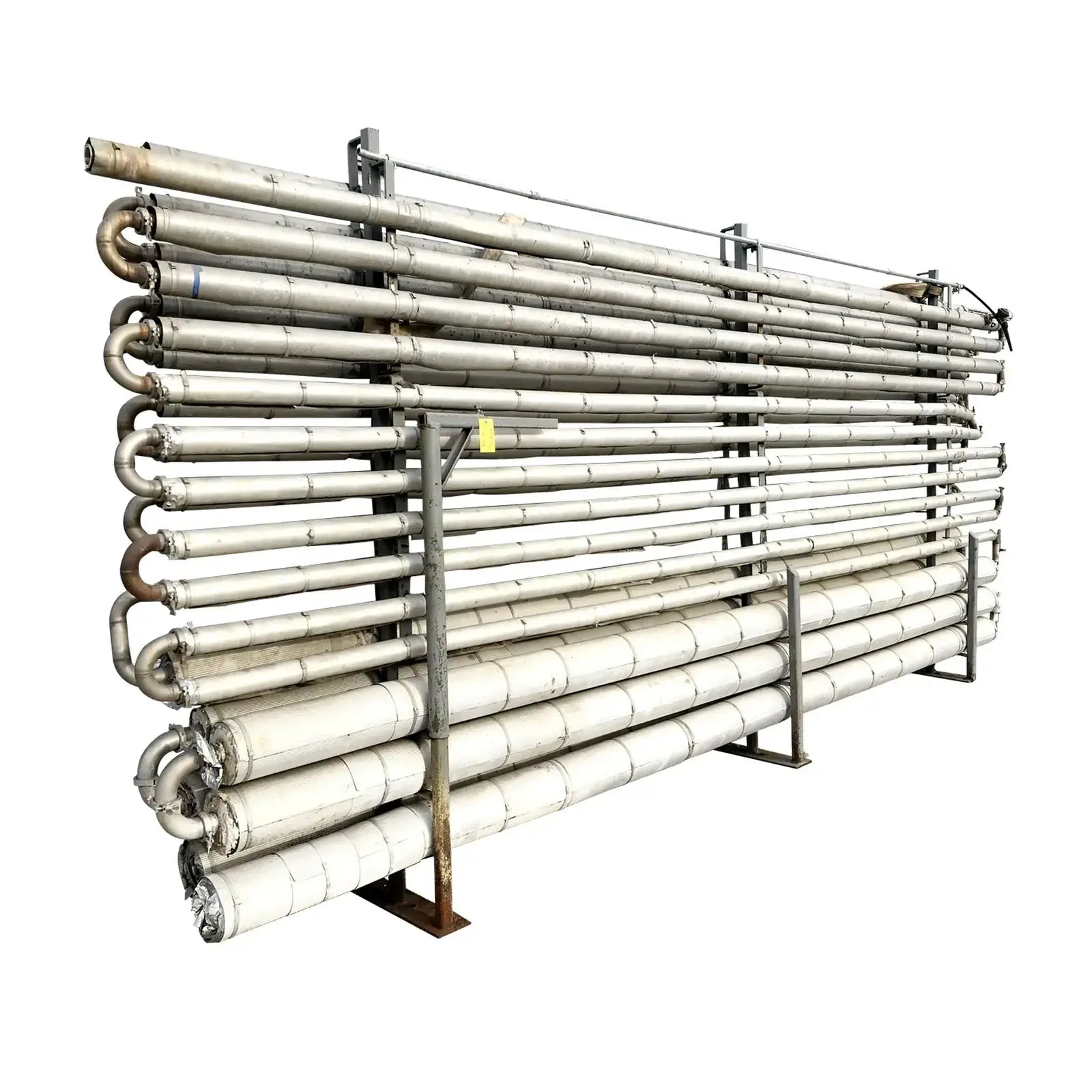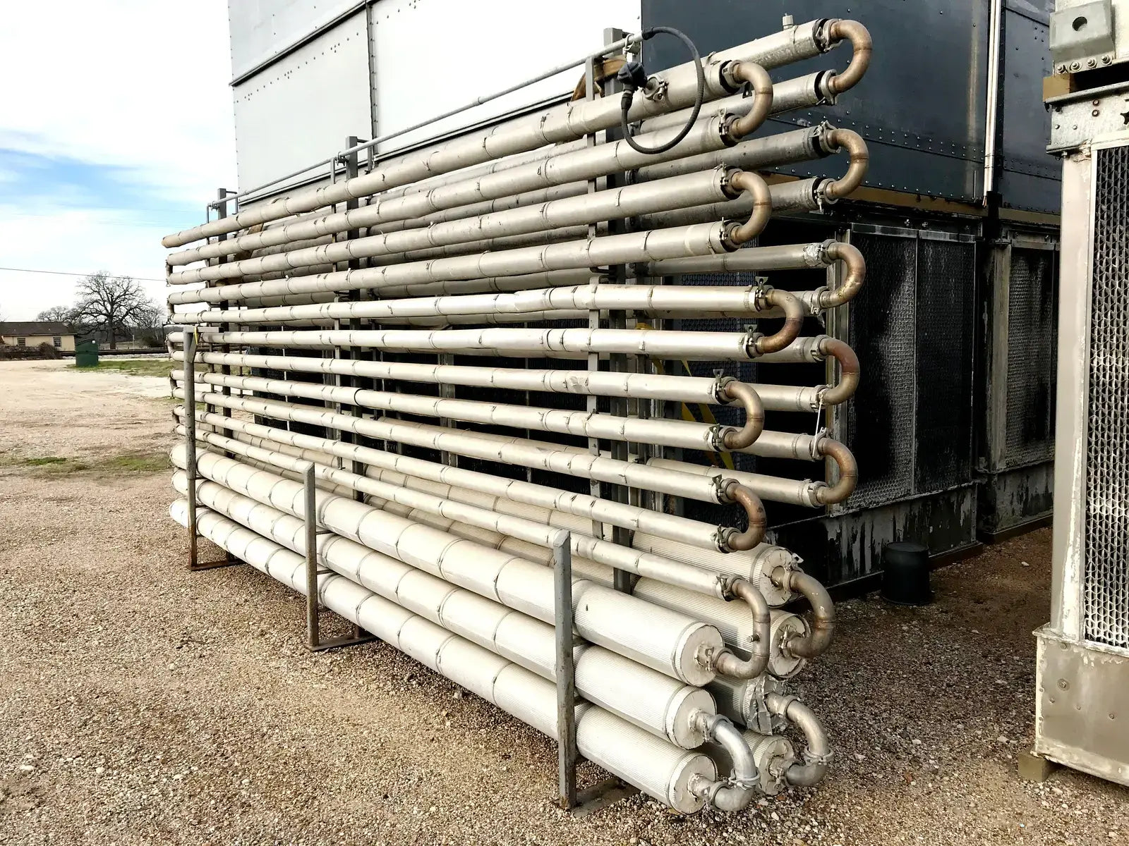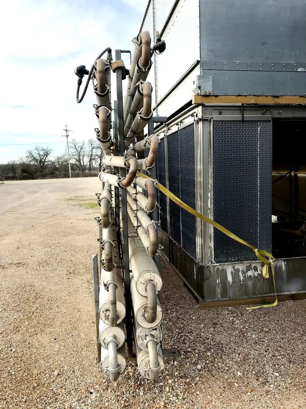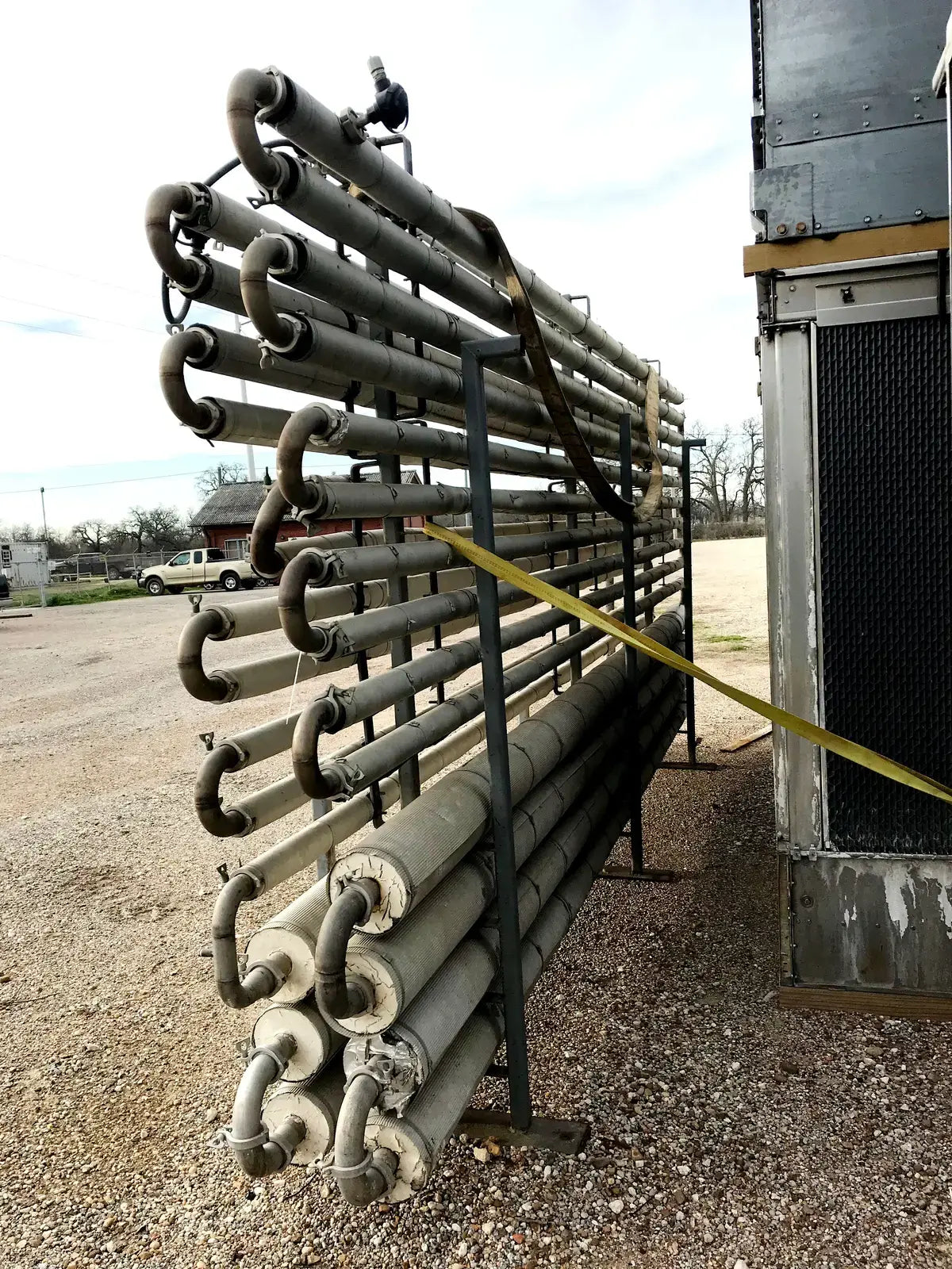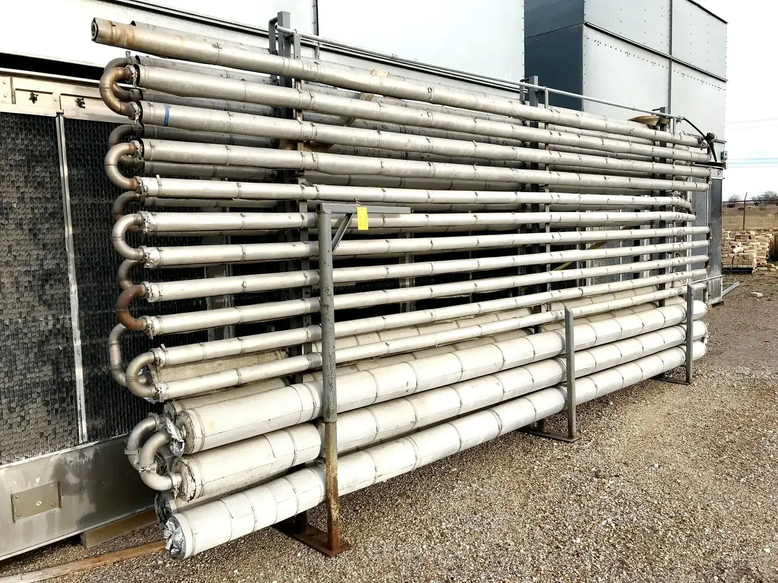 Tubos de retención aislados de acero inoxidable: 20 pies de largo. Cantidades de tubos: (7) 2,5 pulgadas, (21) 2 pulgadas. Tipo de conexión: triple abrazadera sanitaria. Dimensiones totales: 258 pulgadas de largo x 25 pulgadas de ancho x 112 pulgadas de alto.