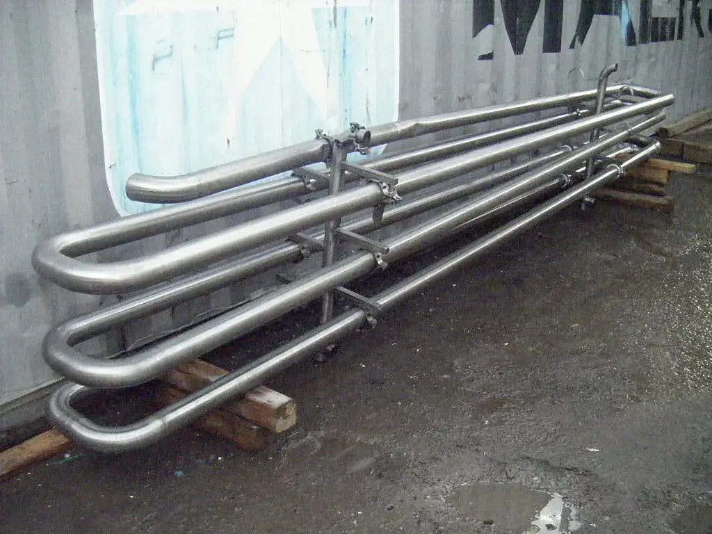 Tubos de sujeción de acero inoxidable. (1) Puerto ACME de 3 pulgadas. (1) Puerto S-line de 2-1/2 pulg. Dimensiones del tubo: 3 pulgadas de diámetro. x 16 pies de largo.
