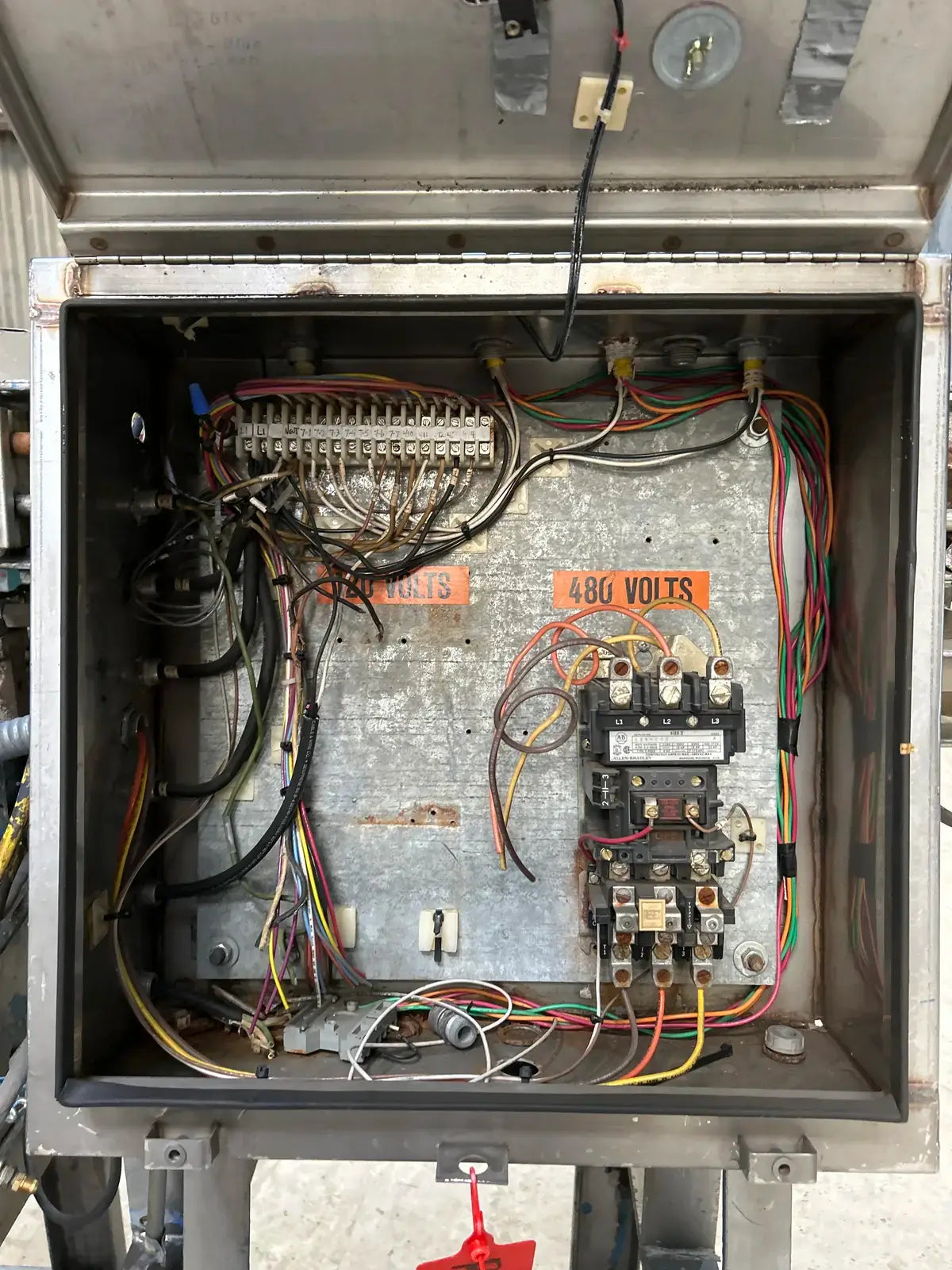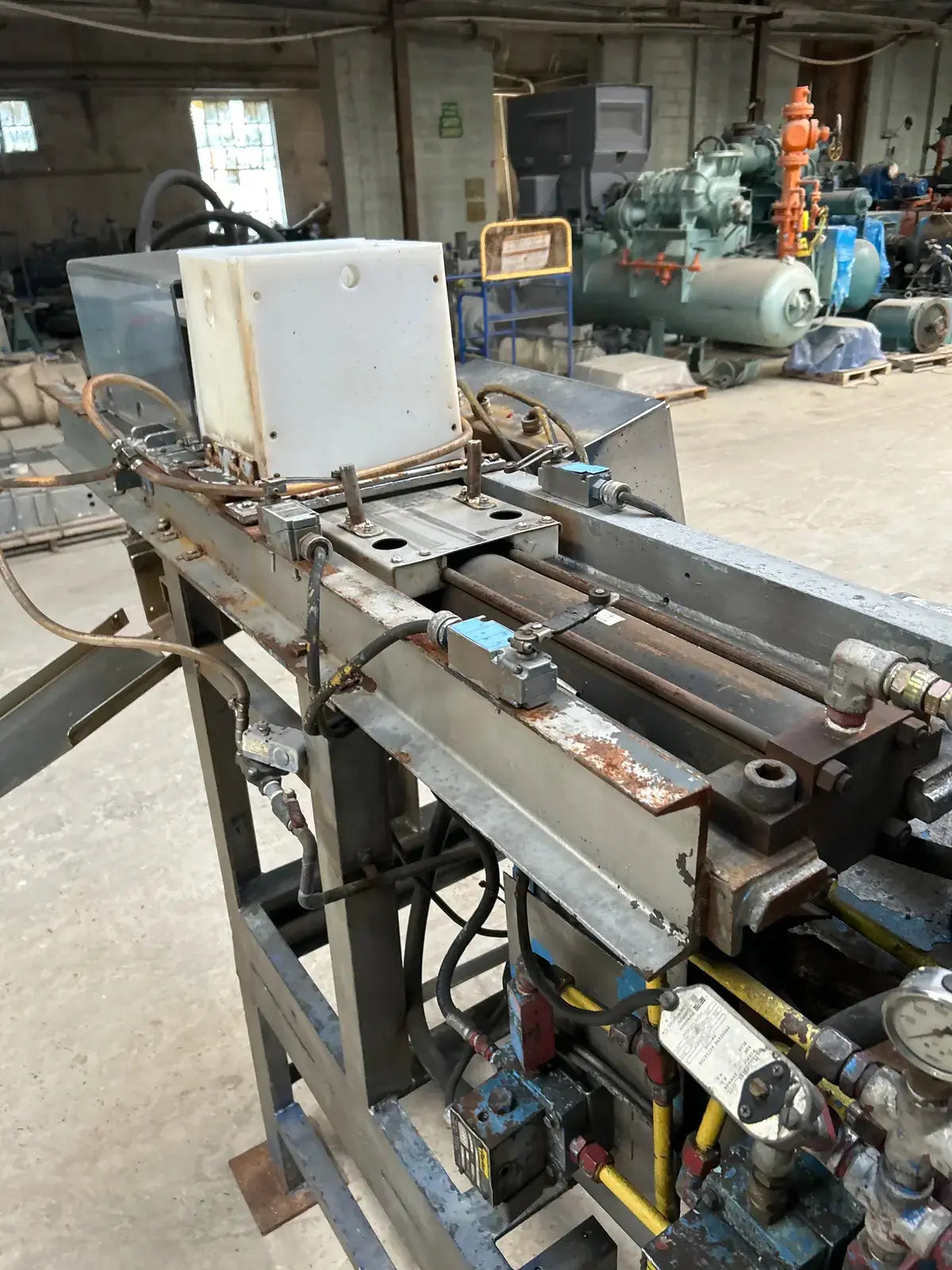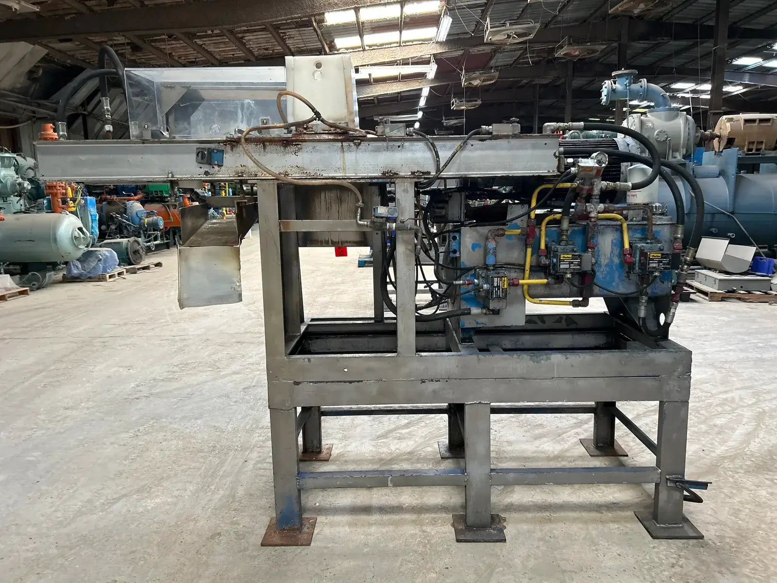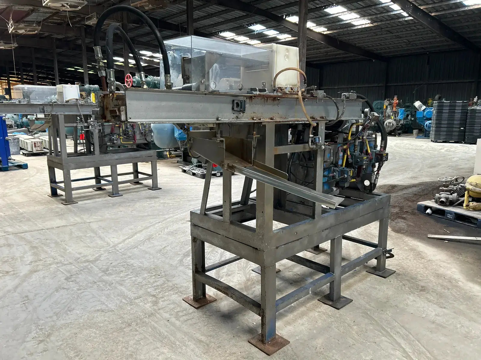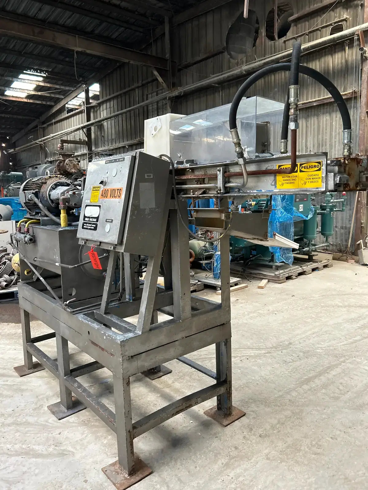 Prensa para bloques de hielo Turbo Vogt. Modelo: BP360. Bloques de 10 lb: 360 bloques por hora. Tamaño nominal del bloque: 6" x 6" x 10". Datos eléctricos: FLA: 50, voltios: 230, fase: 3, Hz: 60. Controles: voltios: 115, fase: 1, Hz: 60.