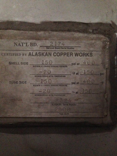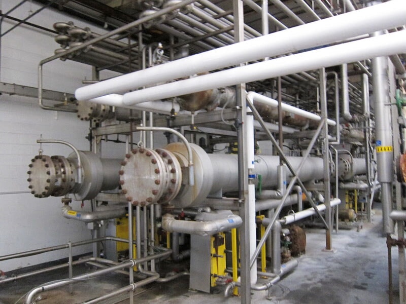 Unidad Esterilizadora de Proceso Avanzado. S/N: 2324. Acero inoxidable, (2) intercambiadores de calor de tubo en tubo, (1) tubo de enfriamiento, 150 psi a 400 °F, 18 pulg. de diámetro x 20 pies de largo, (2) intercambiadores de calor de placas AGC ProHX-F, válvula de conexión y trampa de vapor