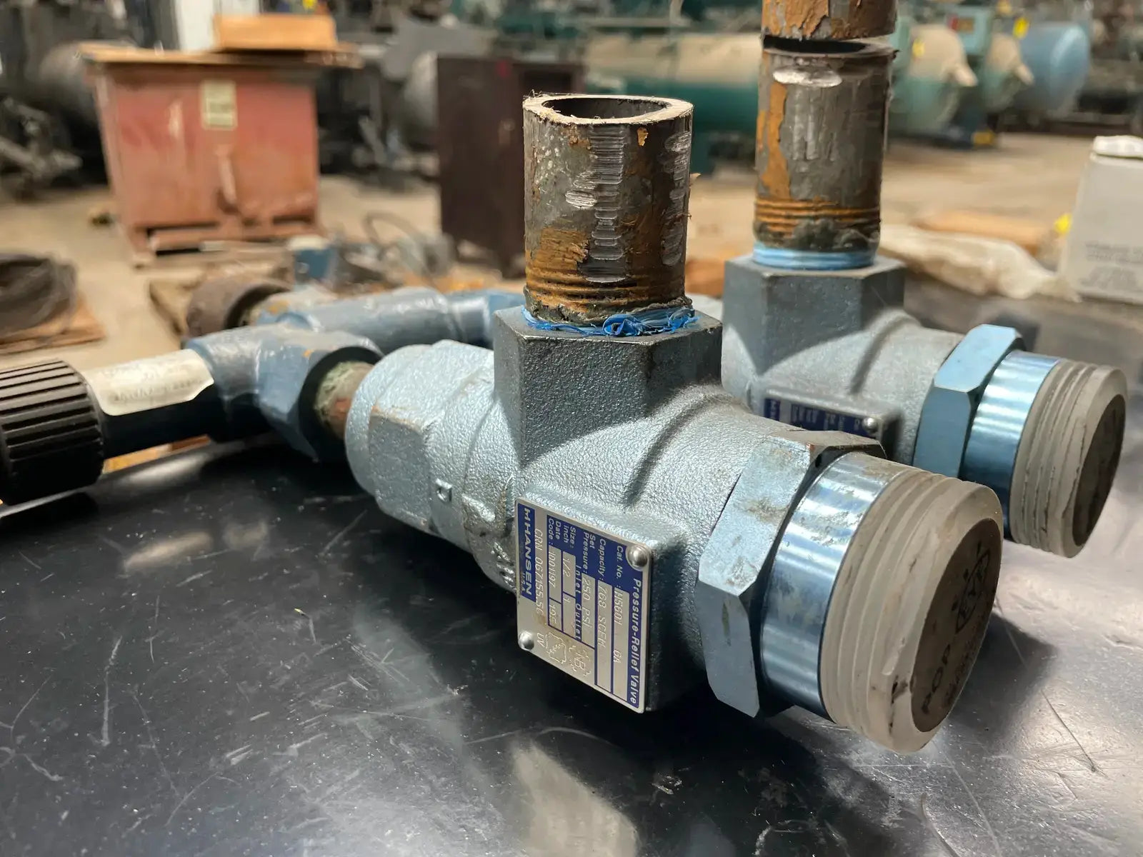 Estas válvulas de alivio de presión Hansen están diseñadas para brindar alivio de emergencia ante una presión excesiva en recipientes que contienen refrigerante. Número de gato: H5601. Capacidad: 150 PSI. Tamaño: Entrada: 1/2, Salida: 1.