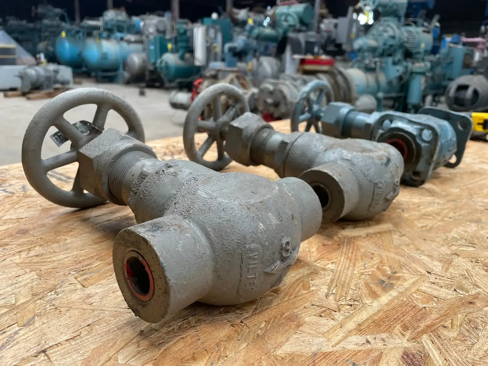 Válvula de expansión de cierre manual de amoníaco Vilter. (1): Válvula de expansión con bridas de 1 pulgada y 4 pernos (bridas cuadradas). (2): Válvula de expansión de tornillo de expansión de amoníaco Vilter de 1 pulgada