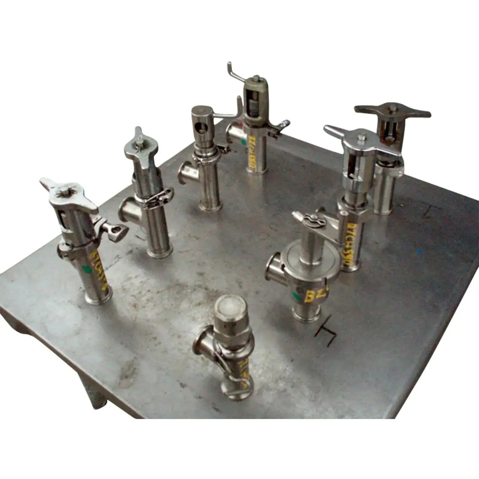 (8) Válvulas de compresión de tornillo de acero inoxidable. Entradas/Salidas de: (2) 1-1/2 pulg. de diámetro. Accesorio S-Line. Dimensiones totales aproximadas: 5-1/4 pulgadas de largo x 2-1/2 pulgadas de ancho x 10-1/2 pulgadas de alto.