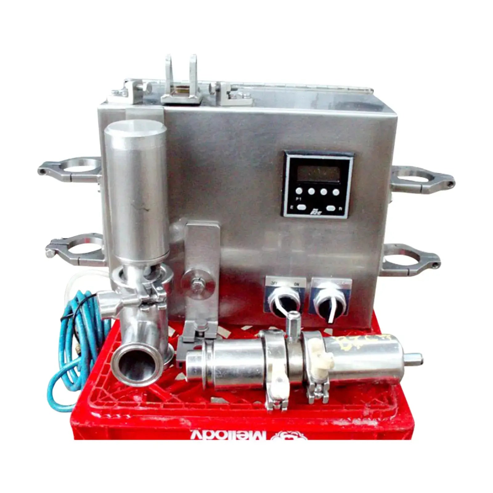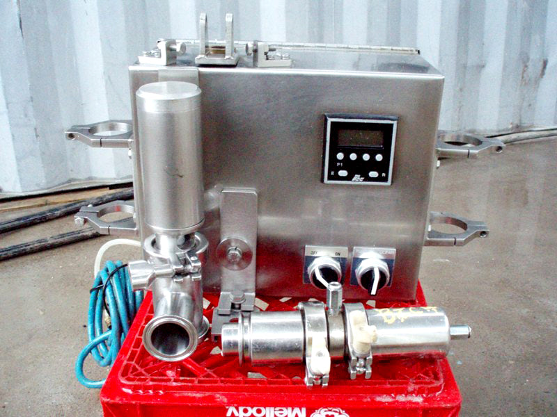 Válvulas sanitarias accionadas por aire de acero inoxidable con caja de control. Se utiliza para pruebas en línea y desvío de productos alimenticios y acuáticos. Dimensión total de la válvula suelta: 4-1/2 pulg. de largo x 3-1/2 pulg. de ancho x 9-3/8 pulg. de alto. Dimensiones totales de la caja con (1) válvula montada: 1 pie 7-1 /2 pulg. de largo x 10-1/2 pulg. de ancho x 1 pie ½ pulg. de alto.