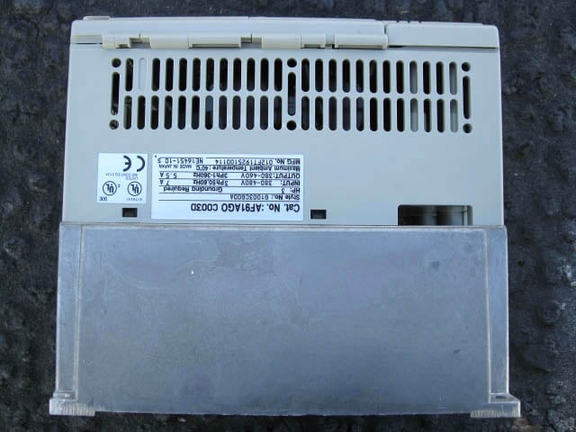 Variador de frecuencia ajustable Cutler-Hammer AF91AG0 sin usar. Modelo: AF91AG0 C003D. Estilo: G1003CGODA. Fabricante no. 012FT1925100114. 3 CV. Entrada: 380-480V, 7 amperios, 50/60Hz, trifásica. Salida: 380-480 V, 5,5 amperios, 1-360 Hz, trifásico. Dimensiones totales: 5-1/2 pulgadas de largo x 6-1/2 pulgadas de ancho x 7 pulgadas de alto (ACN2a).