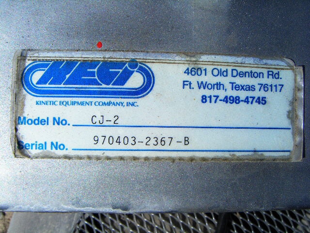 (2) Ventilador de acero inoxidable KECI - 0,75 HP. Kinetic Equipment Co., Inc. Modelo: CJ-2. Número de serie: 970103-2367-A, 970403-2367-B. Diámetro del ventilador: 2 pies 1 pulg. Motor eléctrico Baldor. 1725 rpm, 208-230/460 V, 2,3-2,2/1,1 amperios. 60 Hz, trifásico. Dimensiones totales: 3 pies 6 pulgadas de largo x 1 pie 2 pulgadas de ancho x 2 pies 11 pulgadas de alto