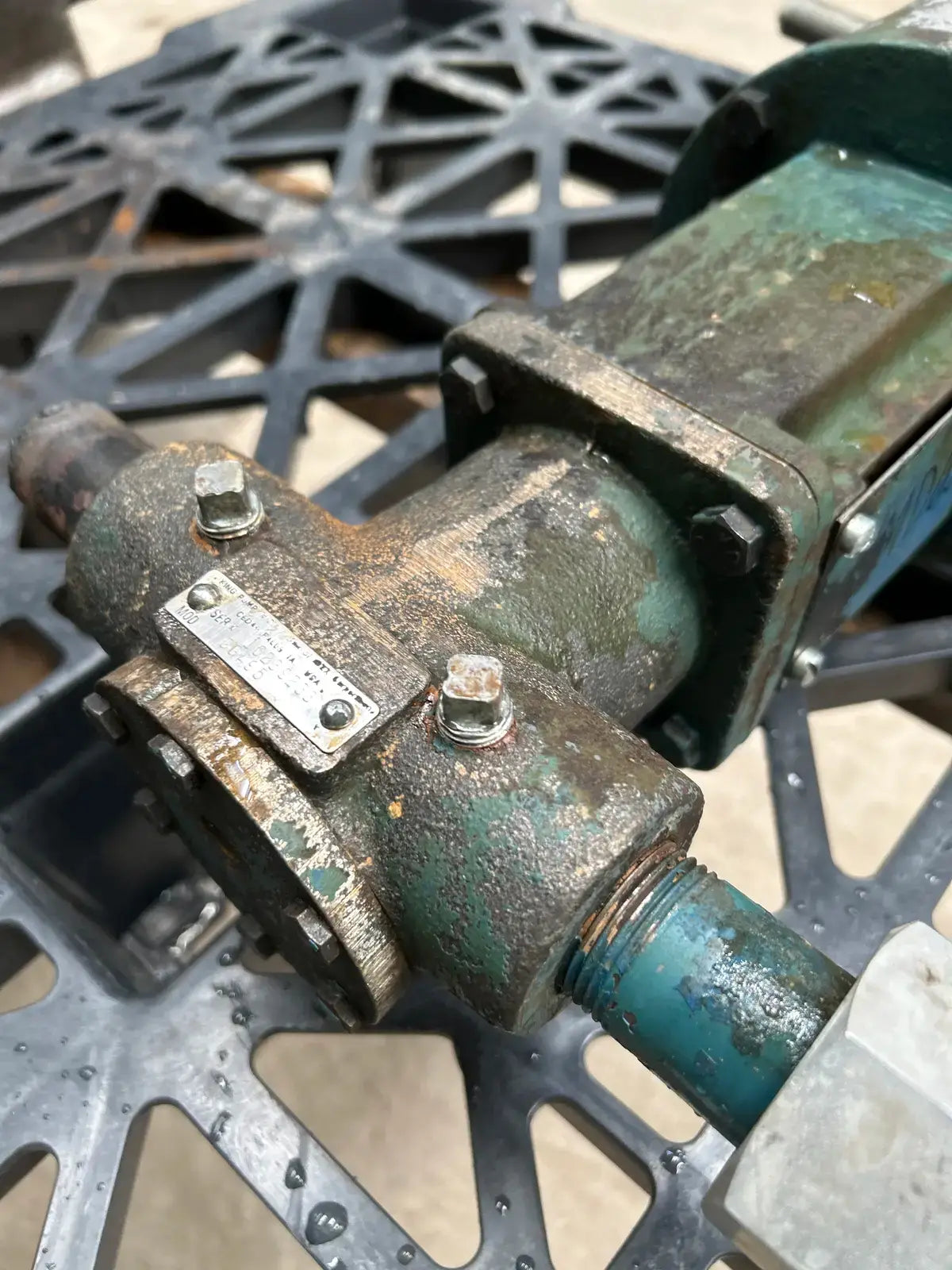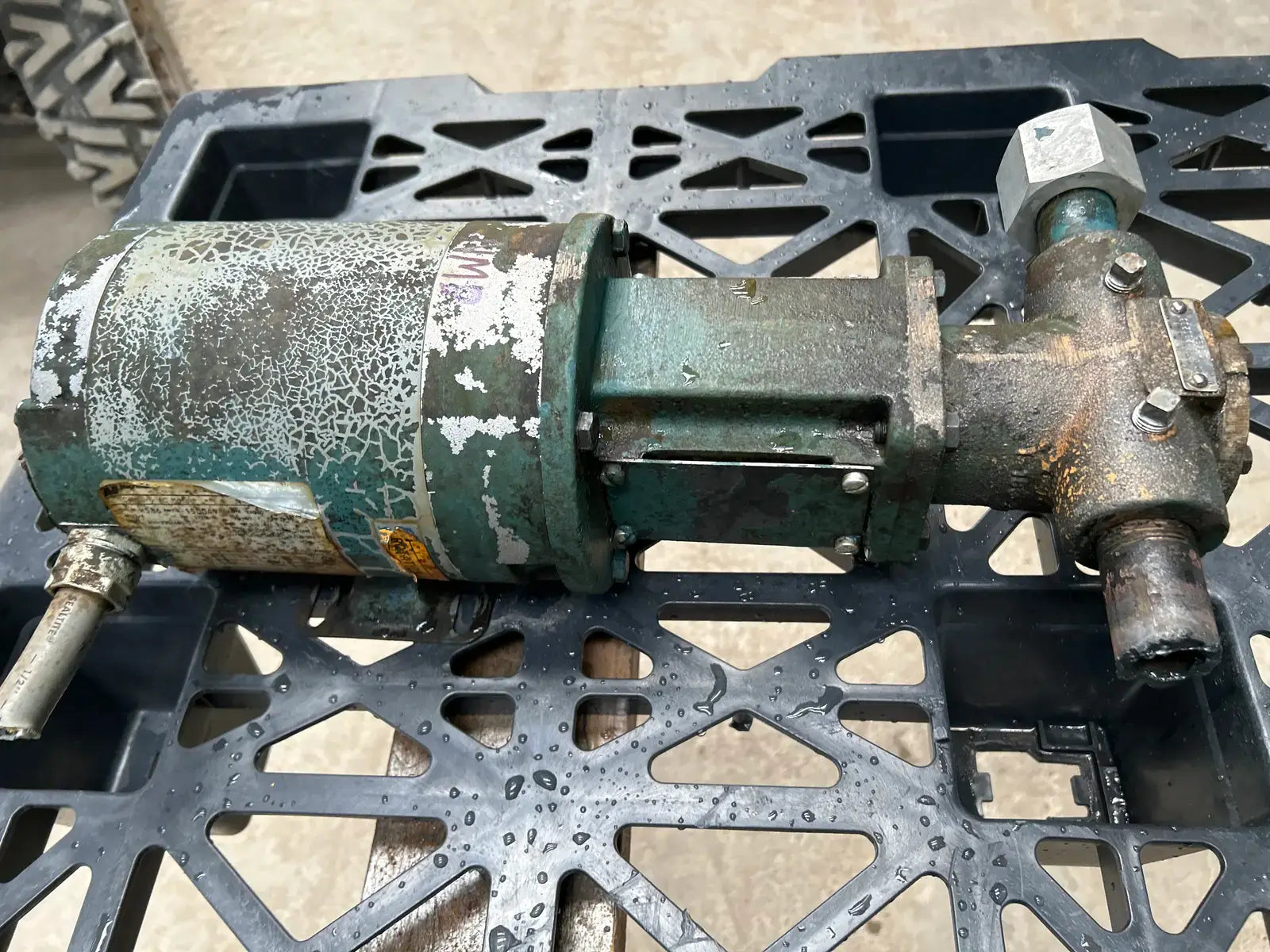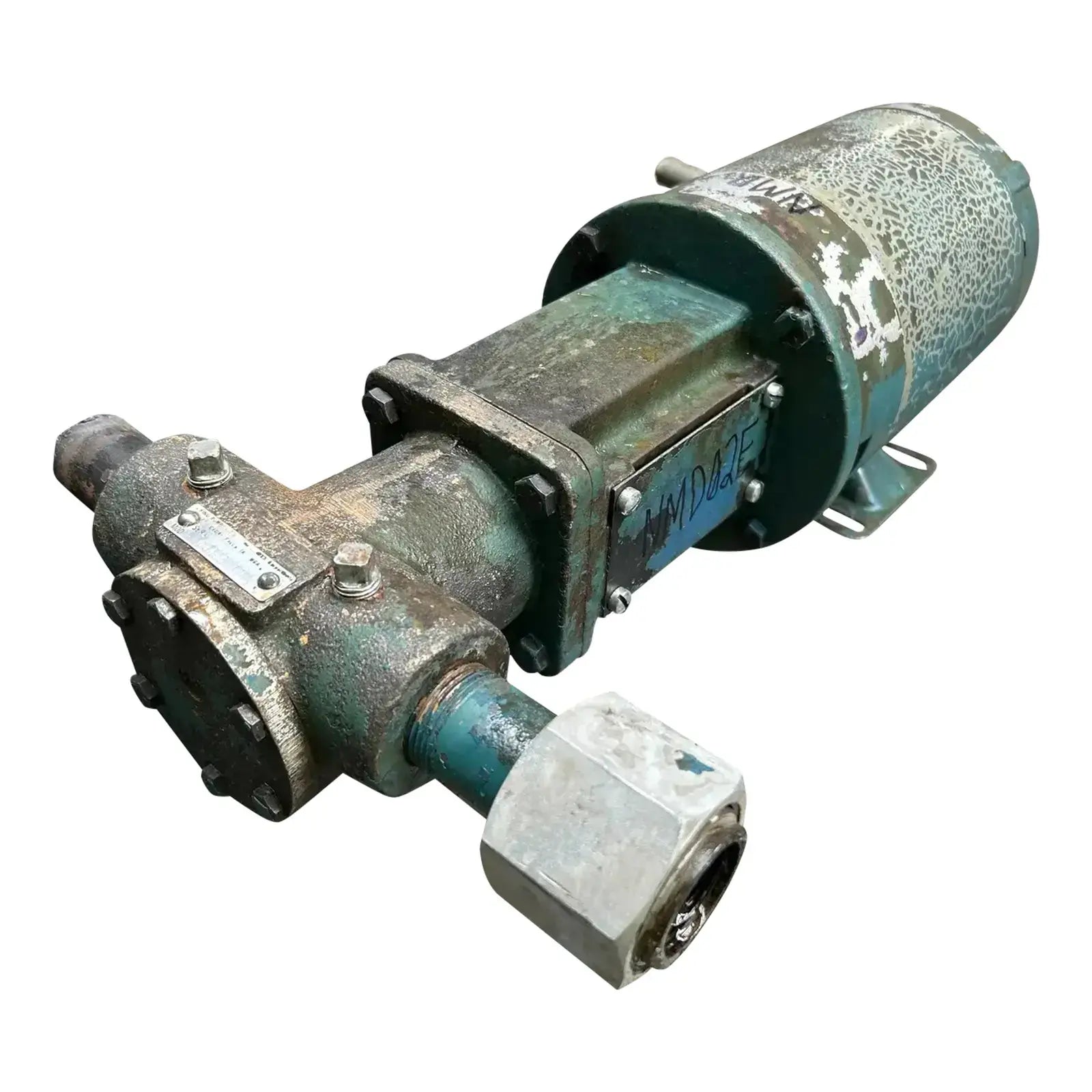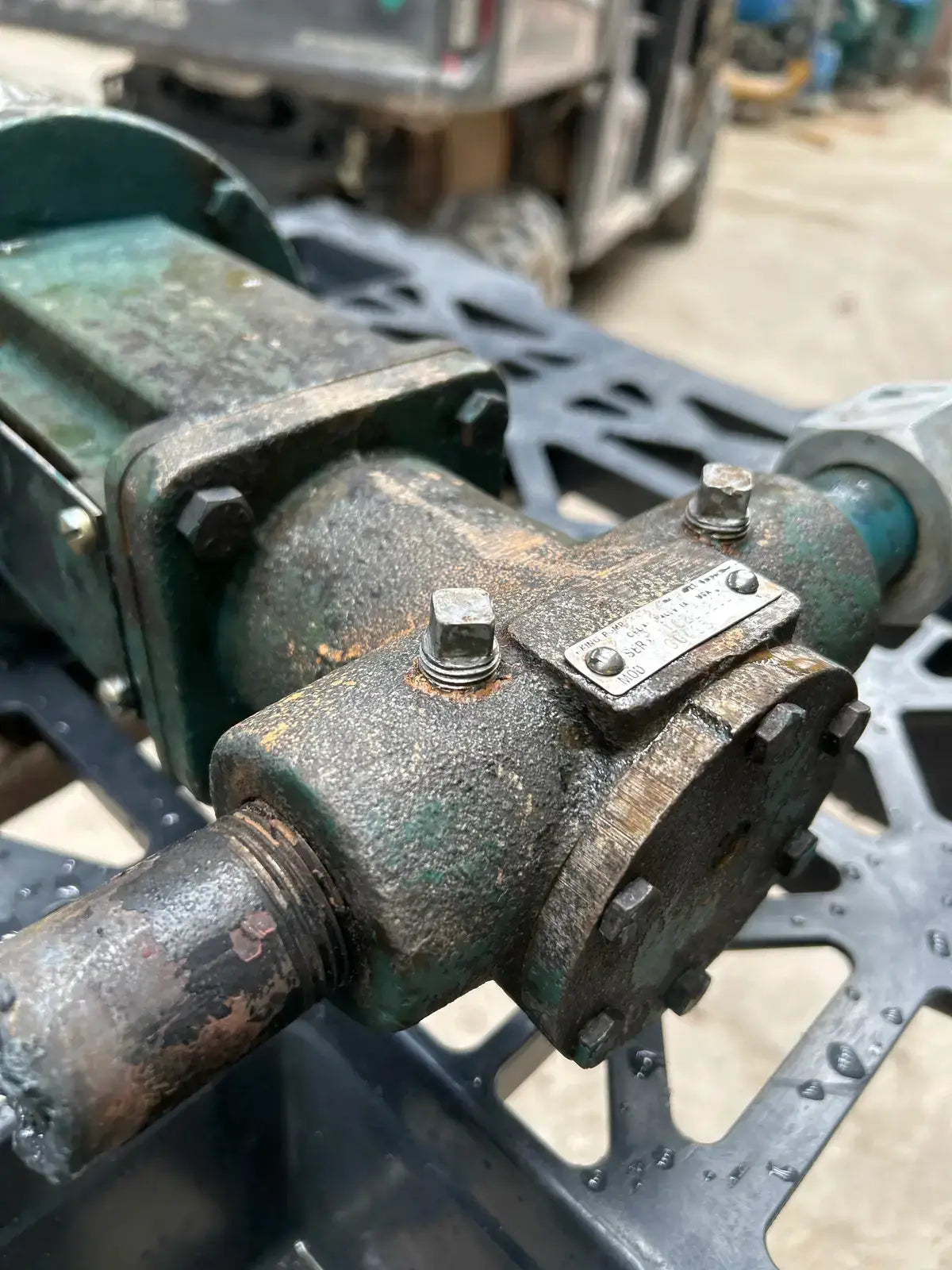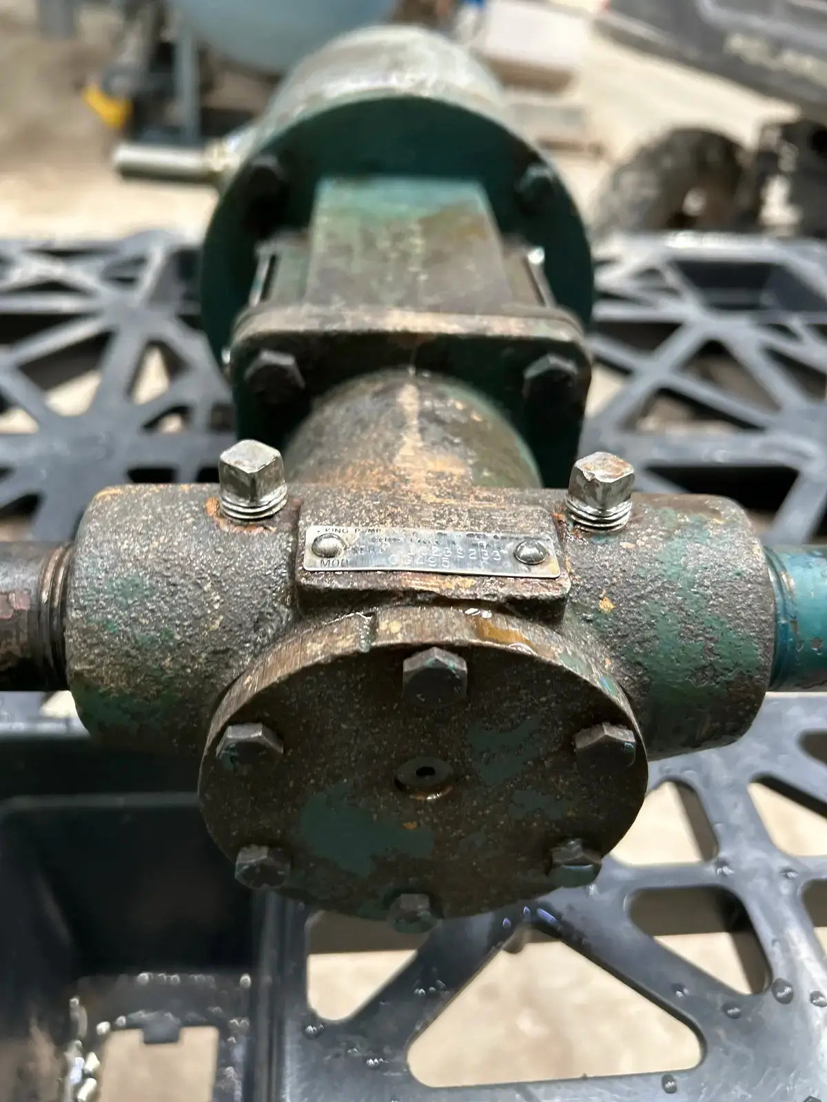 Bomba de engranajes de desplazamiento positivo Viking GG495. Modelo: GG495. N.º de serie: 10239233. Entrada/salida: (2) 1 pulg. NPT. Capacidad nominal de la bomba (60 Hz): 10 GPM a 1750 RPM. Temperatura máxima: 250 F. Presión máxima de trabajo: 250 PSIG.