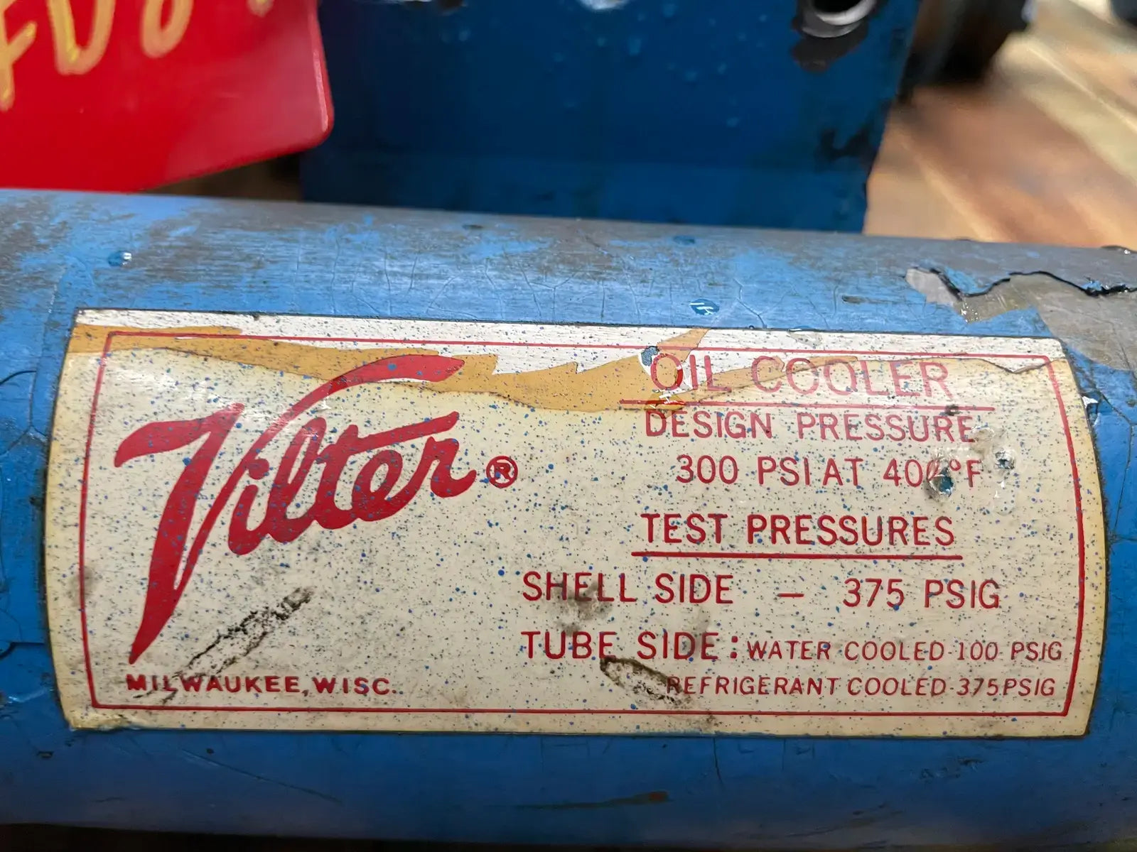 Vilter Reciprocating Compressor Oil Cooler. Design Pressure: 300 PSI @ 400 F.