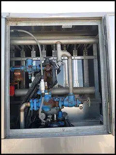 Máquina de Hielo Turbo CAR-28 con Tolva. Modelo: CAR-28. Número de serie: E002090. Refrigerante: Amoníaco (717A). Capacidad Nominal de Hielo: 14 toneladas / 24 hr. Controles: 115V, 60Hz, Monofásico. Motor de barra trituradora: 2HP, 3.1 FLA, 18.6 LRA, 460V, 60Hz, trifásico. Motores de bomba de agua (2): 0,75 HP, 1,7 FLA, 2,2 LRA, 460 V, 60 Hz, trifásicos. Motor de tolva: 0,75 HP, 115 V/230 V, 60 Hz, monofásico. Peso de envío: 7,819 libras. Flujo de agua de descongelación: 22 GPM. Flujo de amoniaco líquido 11. Capacidad recomendada del compresor a 0F: 26,04 TR. Dimensiones totales de la tolva: 93 pulgadas de largo x 55 pulgadas de ancho x 120 pulgadas de alto. Dimensiones totales de la máquina de hacer hielo: 104 pulgadas de largo x 95 pulgadas de ancho x 110 pulgadas de alto.
