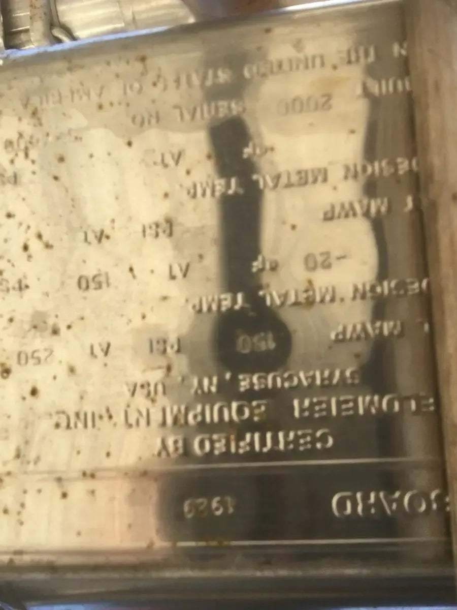 Feldmeier Water Chiller: Certifiled By Feldmeier Equipment, National Board: 1929, Vessel Mawp: 150, PSI: 250F, Min Design Metal Temp: -20F AT 150 PSIG, Year Built: 2000, Serial No: S27600.