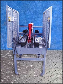 3M-Matic 120AF Case Sealer System. Model: 120AF. Type: 19600. S/N: 6033. Capacity: up to 27 packages per minute. Minimum box size: 6 in. L x 4-3/4 in. W x 4-3/4 in. H. Maximum box size: 2 ft. 1 in. L x 1 ft. 8 in. W x 1 ft. 8 in. H. Box weight range: 4 lbs. to 65 lbs. Tape size: 1.5 in. to 2 in. W. Power supply: 115 V, 3.8 amps, 60 Hz. (2) Bodine electric drives, 1/9 hp, 1700 rpm, 60 Hz, 1.4 amps, single phase. Conveyor dimensions: 4 ft. 10 in. L x 8 in. W. Conveyor infeed/exit height: 1 ft. 10 in. Overall dimensions: 6 ft. 4 in. L x 3 ft. 3 in. W x 5 ft. 3 in. H. (ACN123a)