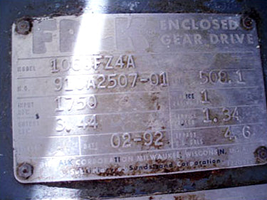 A-One Workhorse Line Conveyor System. Model: A-33-14. S/N: 22093-2. Belt width : 2 ft. 10 in. Maximum aperture/clearance above belt: 1 ft. 5 in. H x 2 ft. 10 in. W. (7) Rollers dimension: 2 ft. 10 in. L. Baldor Industial Electric Motor, Hp: 1, RPM: 1740, 230 - 460 V, AMPS: 2.8 - 1.4, Hz: 60, 3 phase. Falk Enclosed Gear Drive, Model: 1060 FZ4A, Ratio: 508.1, Input rpm: 1750, Output rpm: 3.44. Infeed/exit height: 6 ft. 5 in. Overall dimensions: 14 ft. L x 10 in. L x 5 ft. W x 7 ft. 9 in. H.