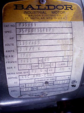 - Motor Manufacturer: Baldor