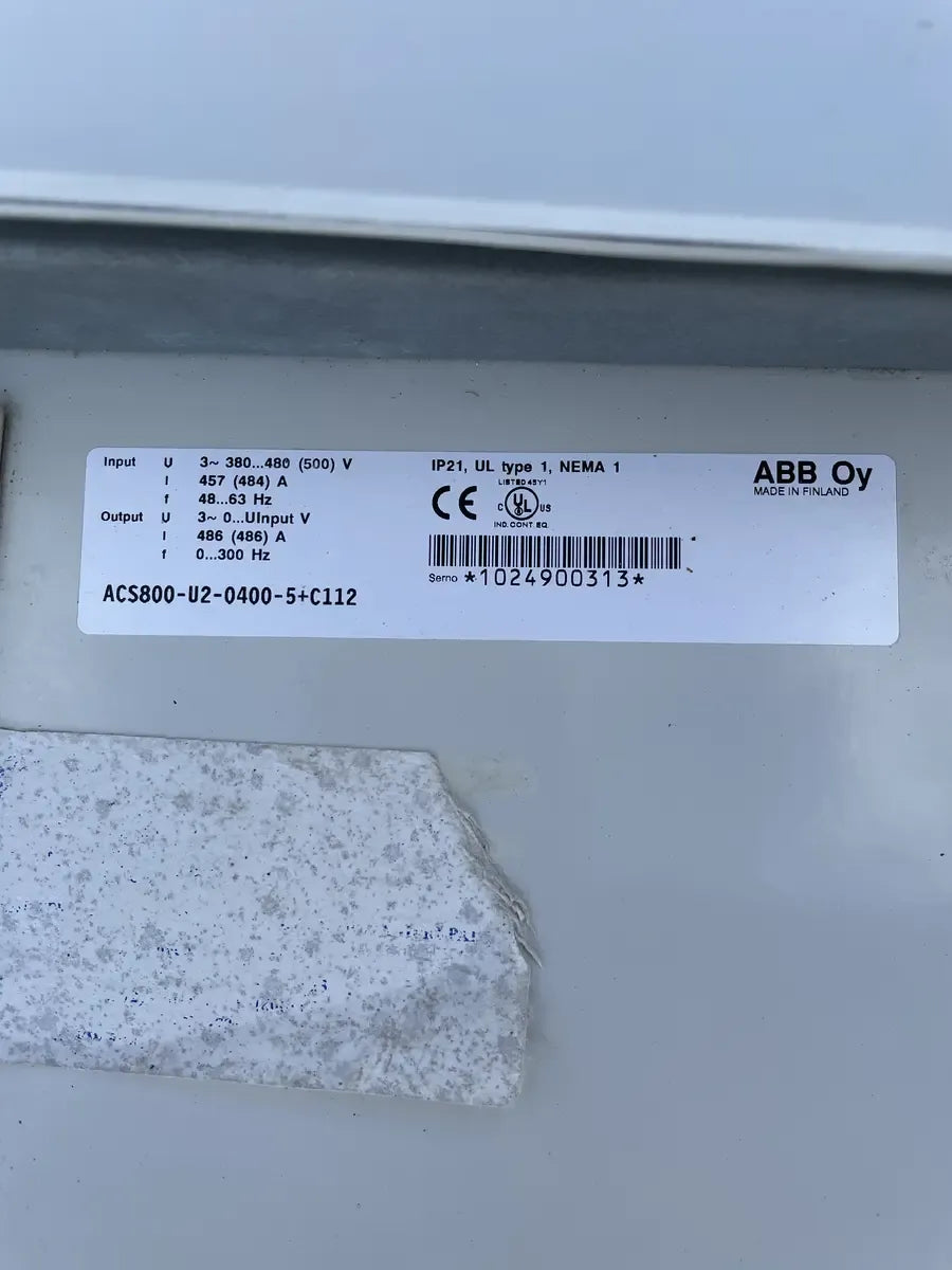 ABB ACS800-U2-0400 Adjustable Frequency Inverter (400 HP)