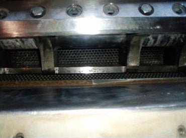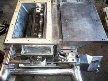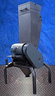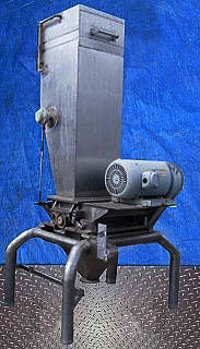 AEC Nelmor Co Inc. Grinder / Hammermill. Model: G1224P1. Serial: 92 05 30811. Nominal throughput rating: 600-700 lbs per hour using polypropylene and 5/16 inch screen. Unit has a hopper infeed equipped with spray bridge. Infeed height: 74 in. Granulator mill has rotating blades that reduce particle size until they pass through the screen hole size. Mounted on a stainless steel Frame. Lincoln AC Motor, 30 hp, 1760 rpm, 90 rpm (final), 230/460 V, 74/37 amps, 60 Hz, 3 phase. Inlets: 14 in. L x 24 in. W. Outlets: 4 in. dia. flanged discharge. Overall dimensions: 4 ft. 11 in. L x 4 ft. 3 in. W x 10 ft. 2 in. H.