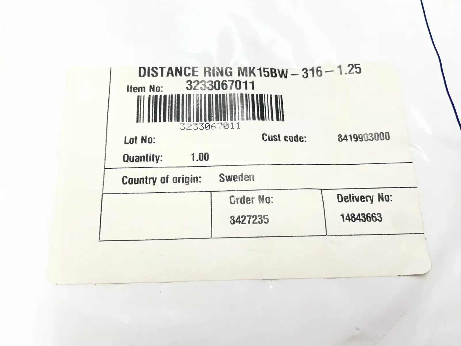 Alfa Laval Distance Ring MK15BW-316. Part No: 3233067011. Size:1.25 OD.