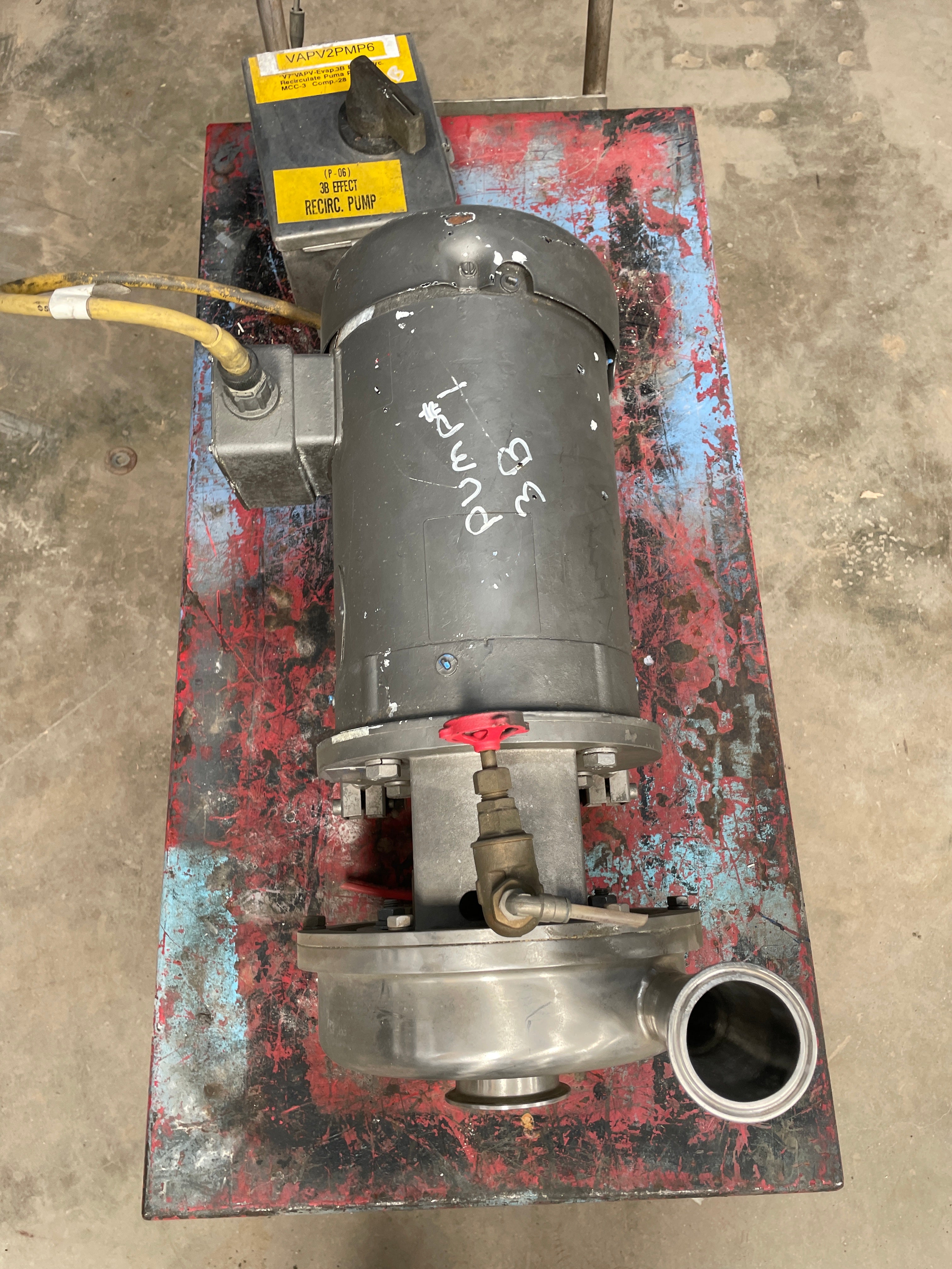 Alfa Laval LKH20 Centrifugal Pump. Model: LKH20, Serial No: 609036-01, Description Code: LKH20M158FSS2US18AA. Max Inlet Pressure: 145 PSI. Max RPM: 3600. Maximum product viscosity: 800 cP. Baldor Motor: 5 HP, Volts: 208-230/460, AMPS: 13-12/8, RPM: 3450, Frame: 184TC, Hz: 60, PH: 3. Previous used with a APV Falling Film Evaporator.