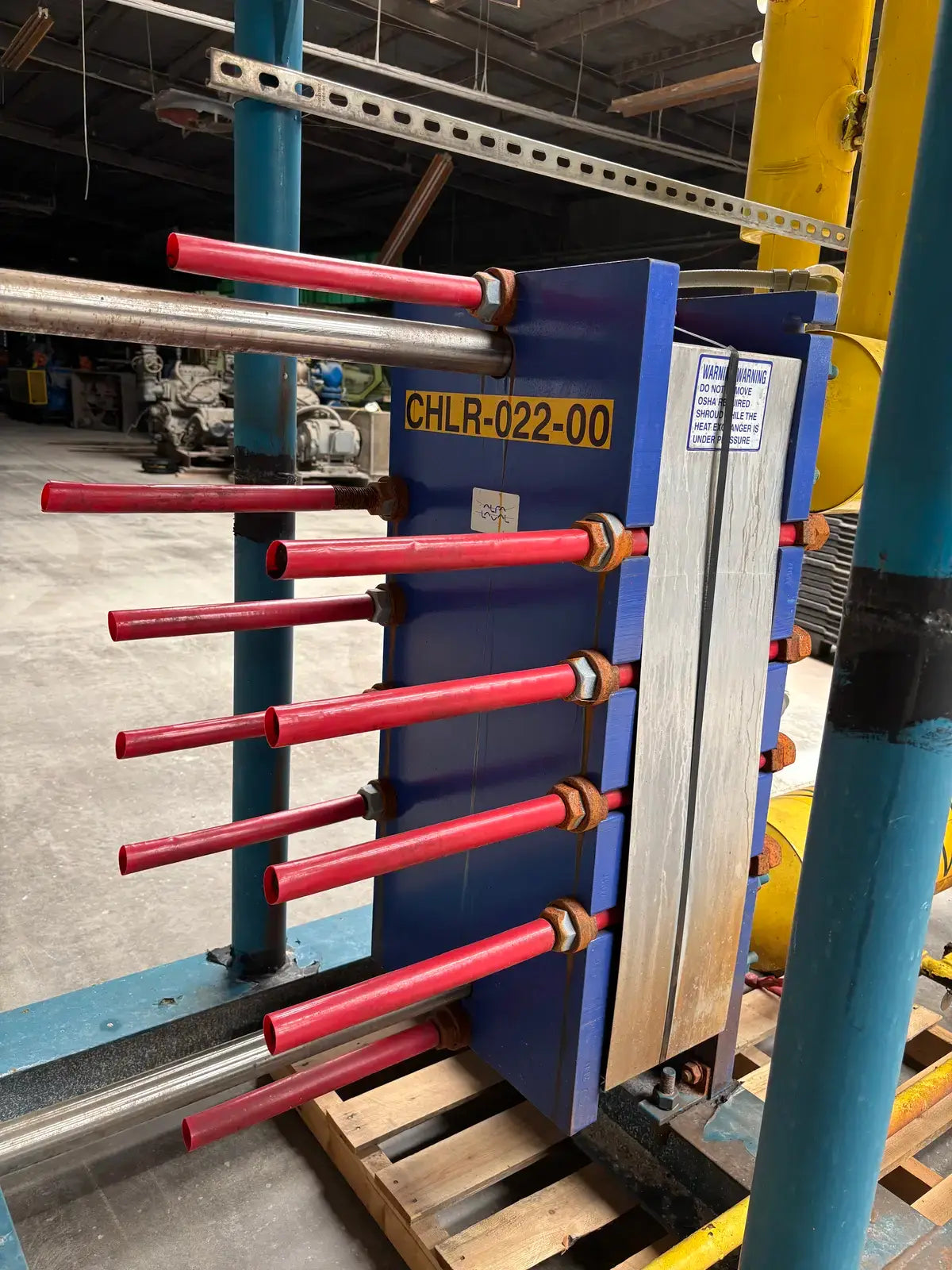 Alfa Laval Plate Heat Exchanger Chiller Package. Model: M10-BWFD. Serial No: 30113-88761. Certified by RVS Surge Drum - National Board: 22973, Serial No: 45956, MAWP: 250 PSI @ 300 F. MDMT: -20 F @ 250 PSI. Year: 2011.