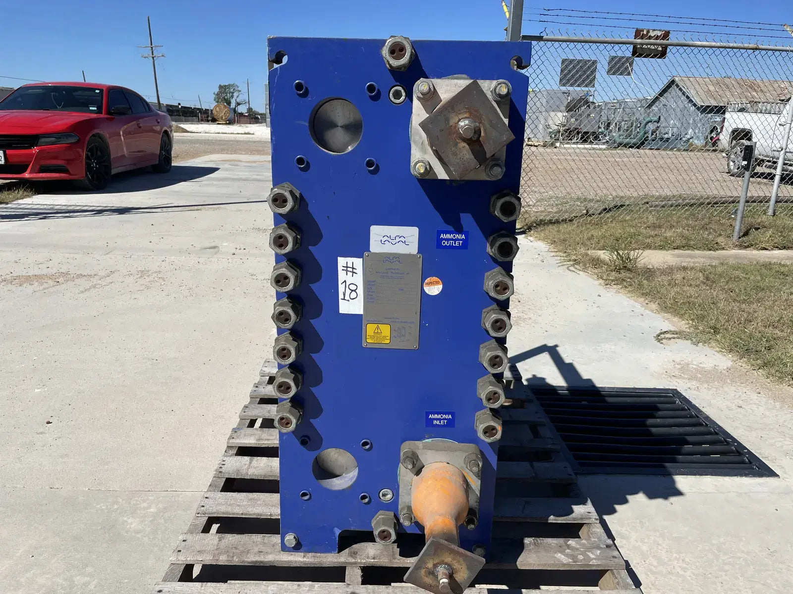 Certified by Alfa Laval Plate Heat Exchanger. Model: M10-BWFD. Serial No: 30115-70300. Order No: 1809087. P.O: 2040-15347. MAWP: 450/300 PSI @ 200 F. MDMT: -20 F @ 450/300 PSI. Area: 149.8 Sq.Ft. Year Built: 2013.