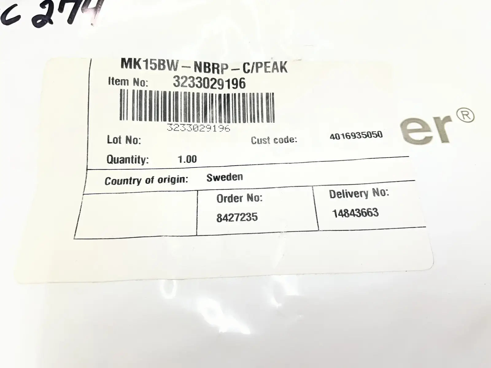Alfa Laval MK15-BW NBRP Clip-On Ring Gasket. Part No:3233029196.