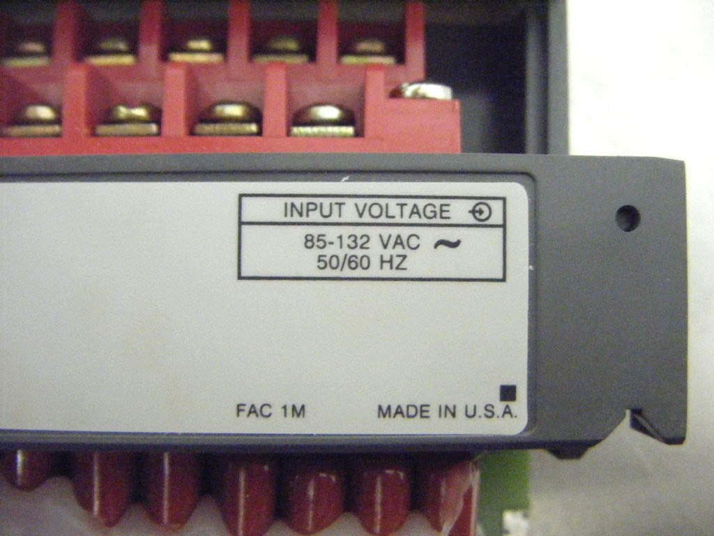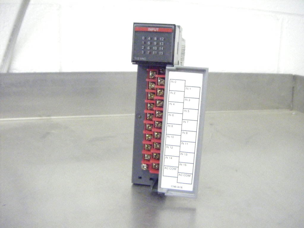 Allen-Bradley SLC 500 input module. Model: SLC 500 CAT 1746 – I A16 Ser B. Input voltage: 85-132 VAC, 50/60 Hz. Overall dimensions: 5-1/8 in. L x 1-3/8 in. W x 5-1/2 in. H.(ACN2).