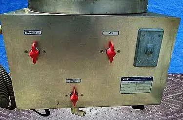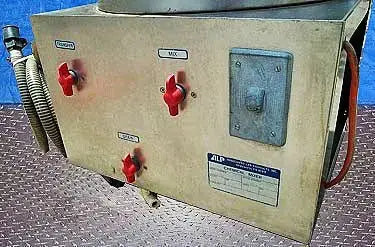 ALP Stainless Steel Mix Tank- 30 Gallon. Model: IO-1005. S/N: C20385. System requirements: 115 V, 1.7 amps, 60 Hz, 1 phase. Little Giant pump, type: U62, motor: 1/10 hp, 2600 & 3000 rpm, 115 V, 50 & 60 Hz, 1.75 amps. Inlet: 2 in. flexible hose. Tank opening: 1-1/4 in. pipe. Control system switch: transfer, mix, drain. Base with (4) wheels. Overall dimensions: 20 in. L x 19-1/2 in. W x 44-1/2 in. H.