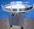 AME Loading/Unloading 48 in. Turntable. Stainless Steel. Loading and Accumulating turntables come in diameters of 18 to 60 in. They provide a cost effective means of loading containers to a filling line. Powered by a 90 VDC drive with a fully adjustable controller to aid in bottle transfer and line speeds. Turntable features single guide rails. Baldor Motor, 1/4 hp, 28 rpm (final) 90 VDC, 2.25 amps, single phase. Overall dimensions: 48 in. dia. x 40 in. H.