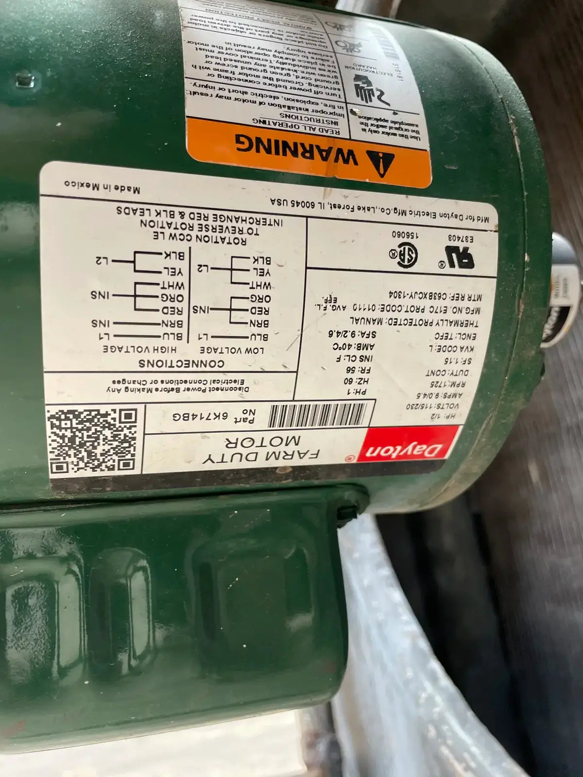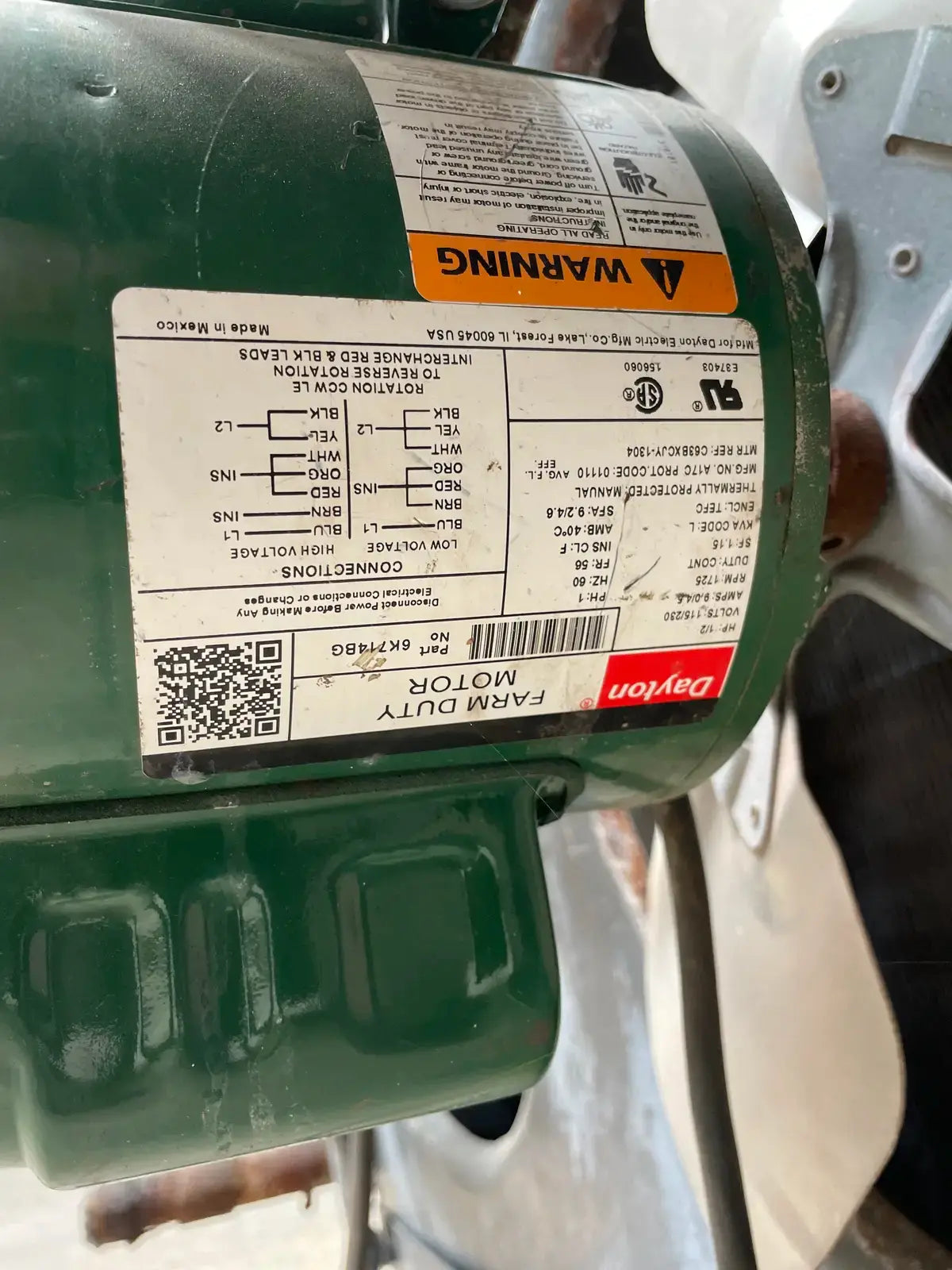 - If Multiple Motors, Motor Descriptions vs specs: (3) 1/2 HP Fan Motor.