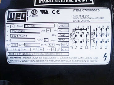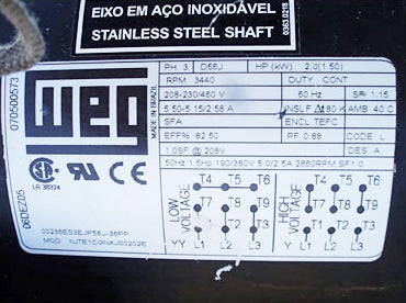 - Motor Manufacturer: WEG