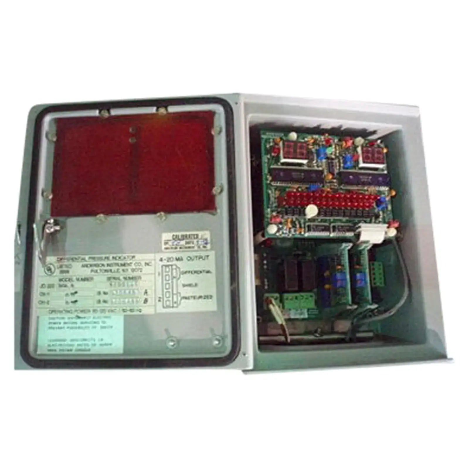 Anderson Differential Pressure Indicator. Model: JD222-B02-A. S/N: 9200115. Power supply: 110-120 VAC. 50-60 Hz. Overall dimensions: 8 in. L x 4 in. W x 10 in. H.