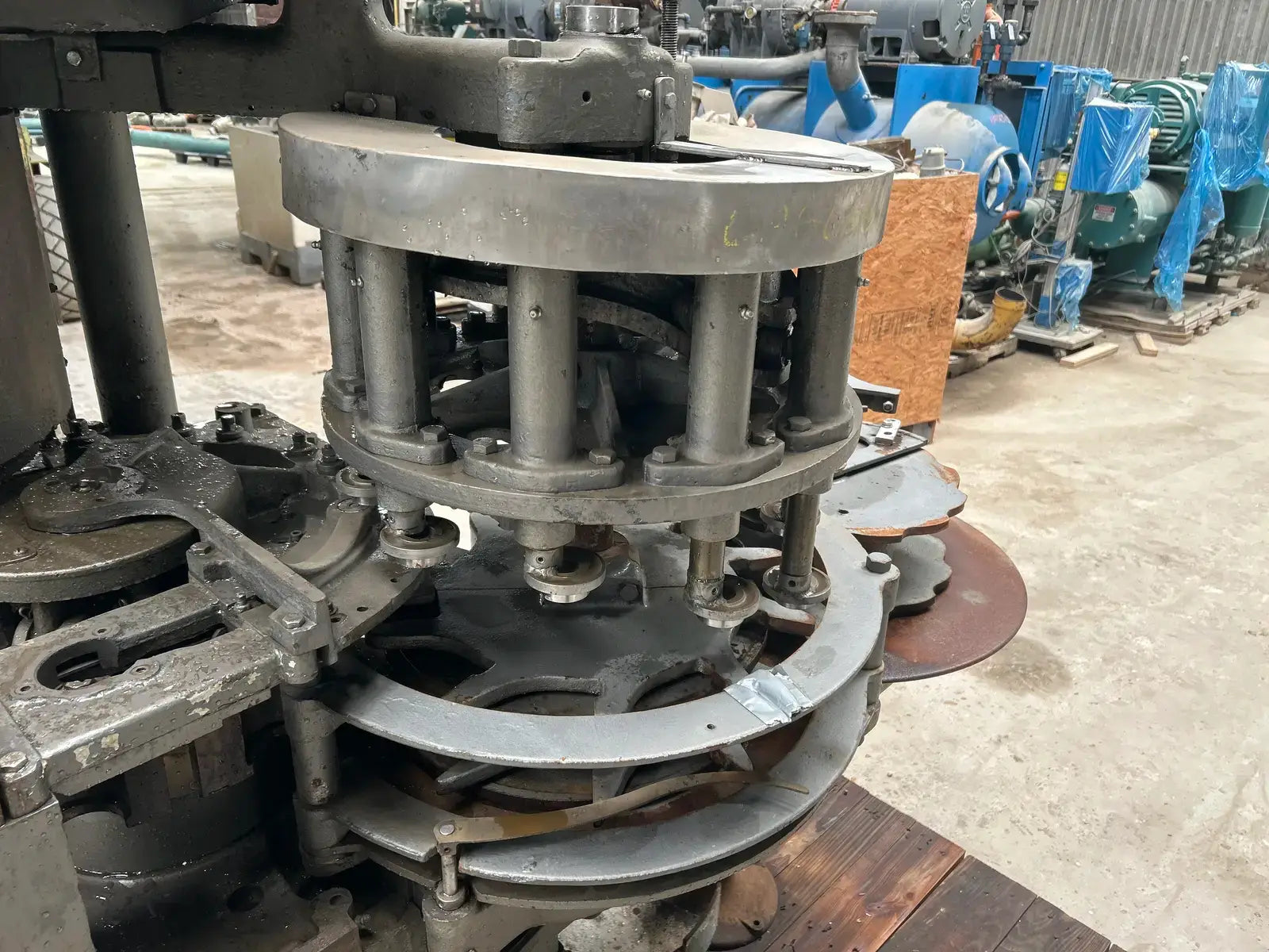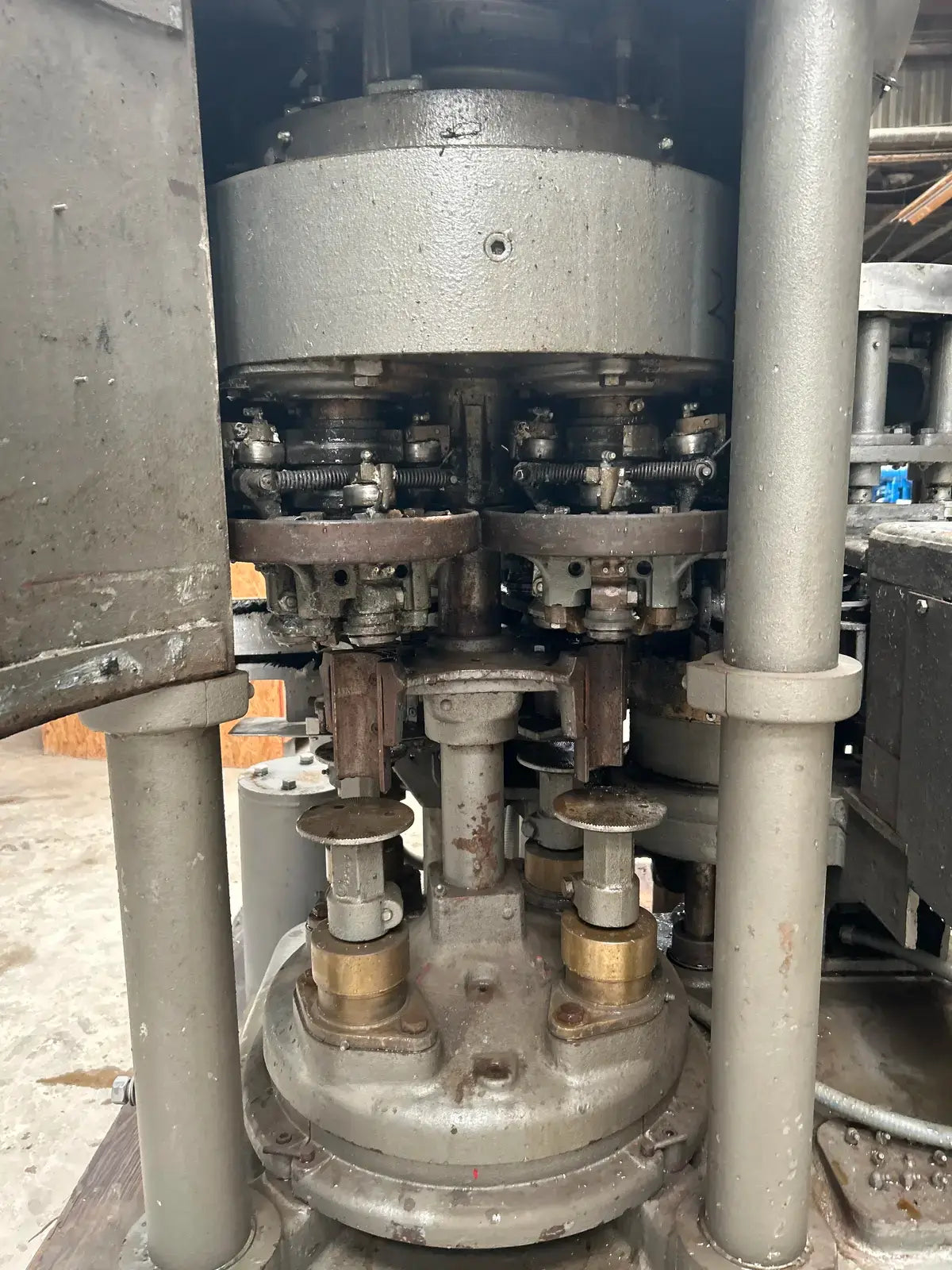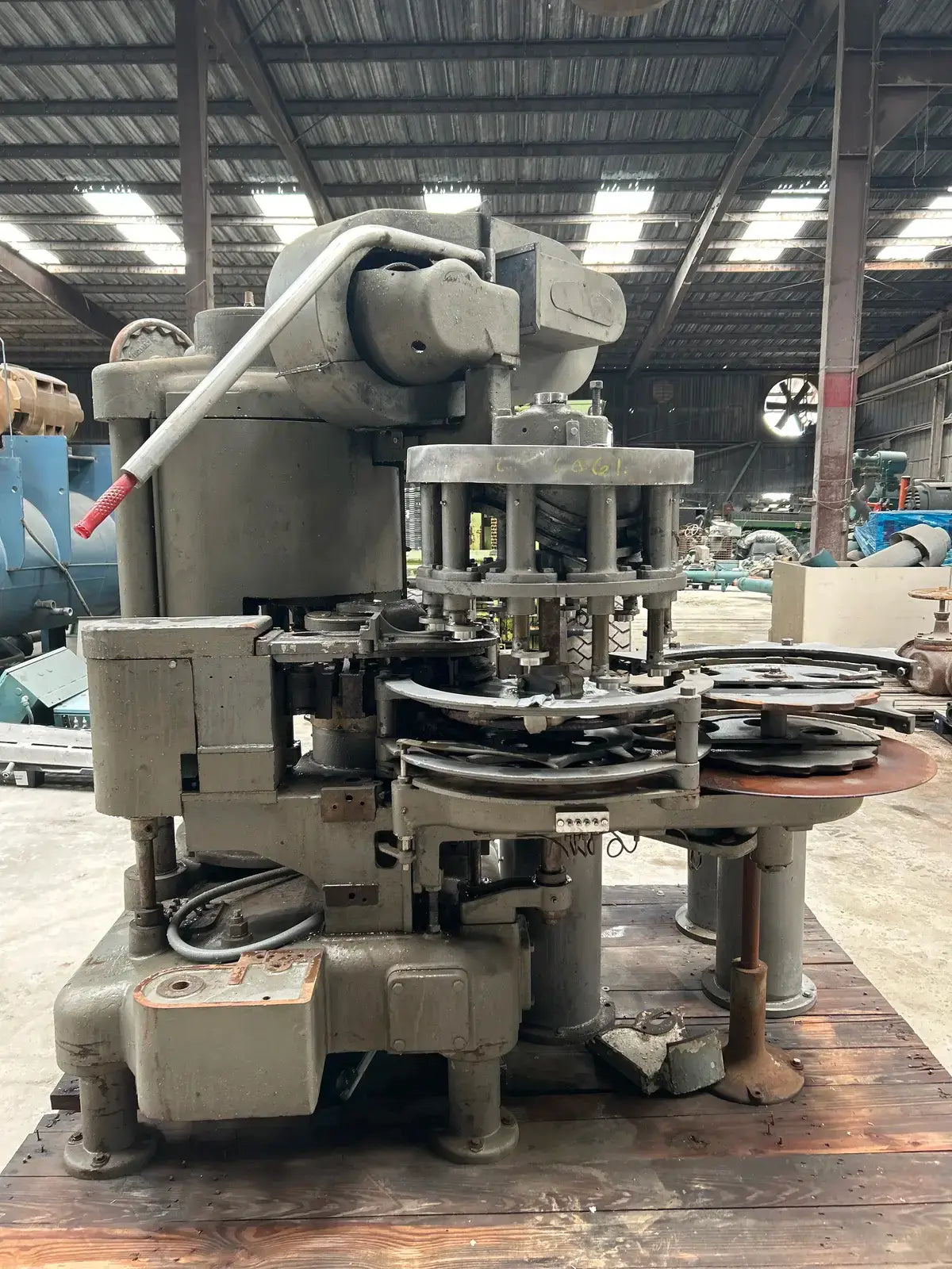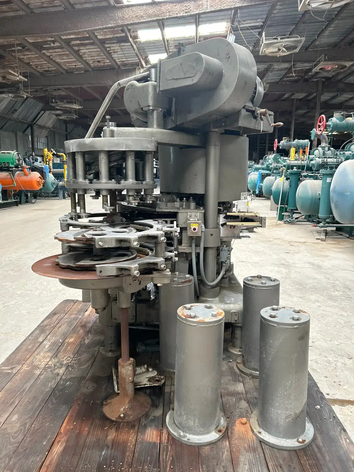 Angelus Sanitary Can Machine Co. Can Seamer, Model 40P DF Seamer. Serial 4991559. Previously rebuilt by Sheppard Machine Co. in 1995, S/N: 4991559. Last ran 204 x 708 cans (2.25 in. x 7.5 in. tall), composite can for refrigerated dough. Note on machine mentions max 180 cans per minute. Overall dimensions: 6.5 ft. x 5 ft. x 6.5 ft. High.