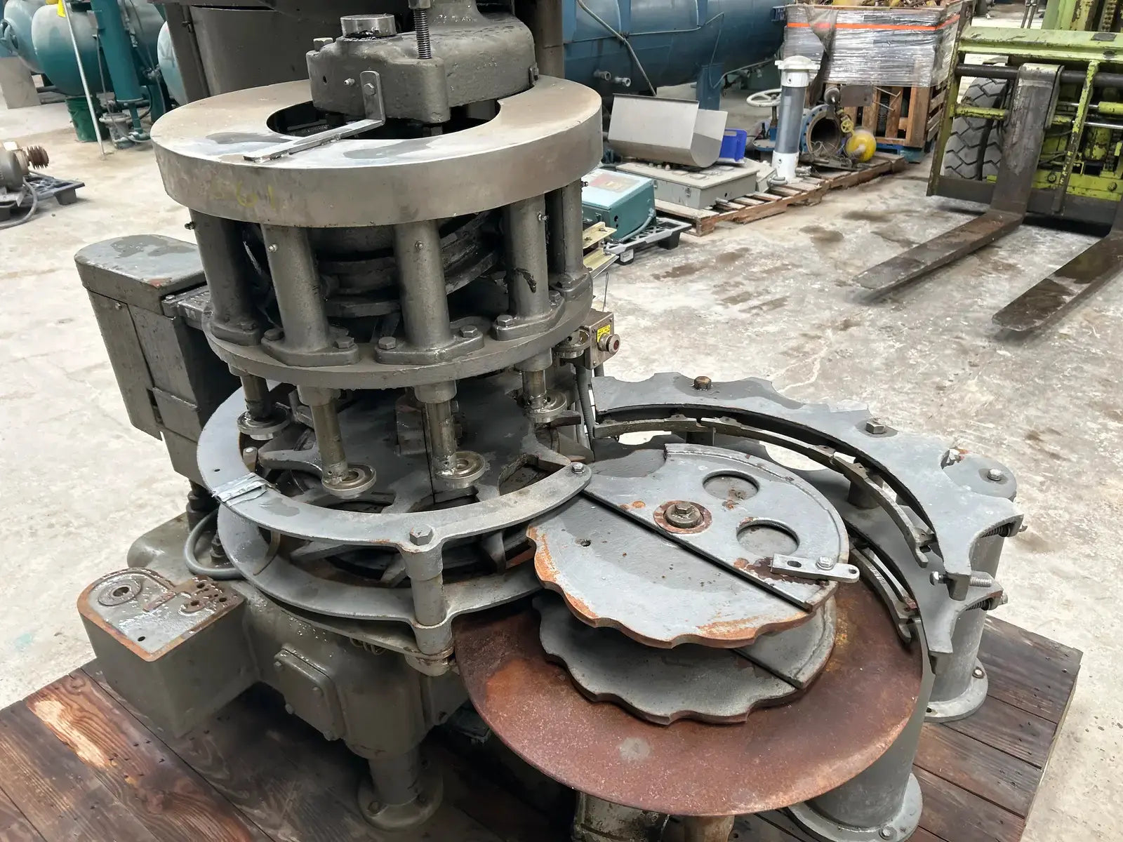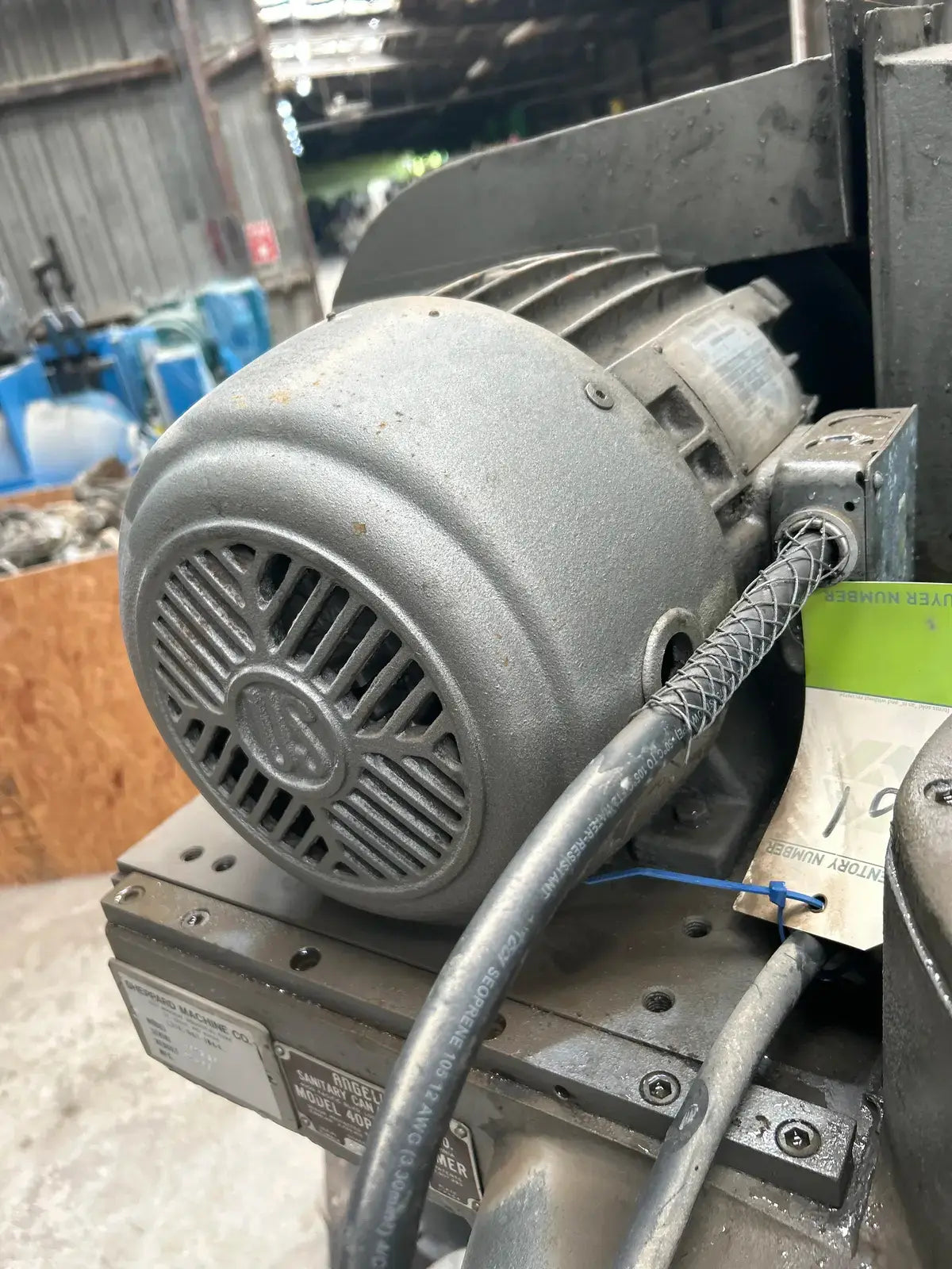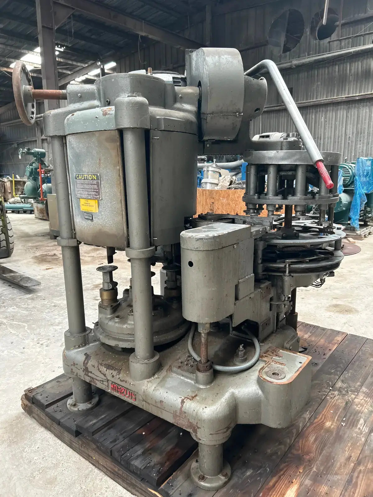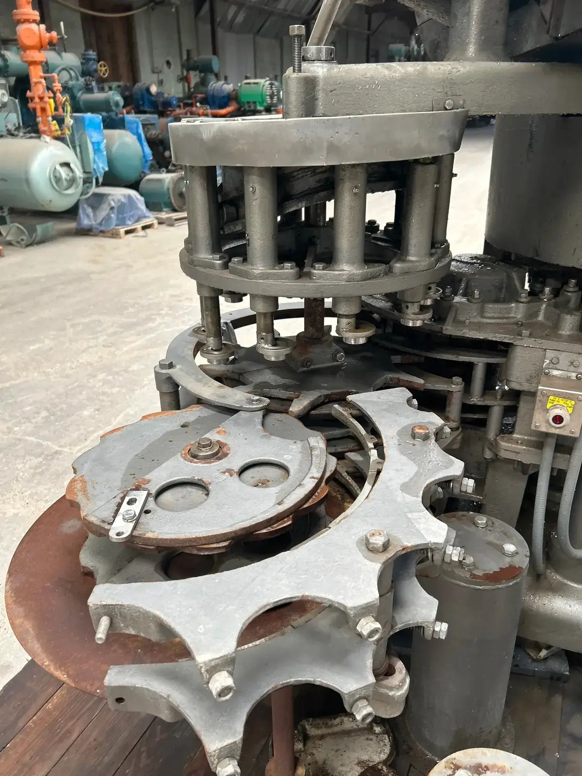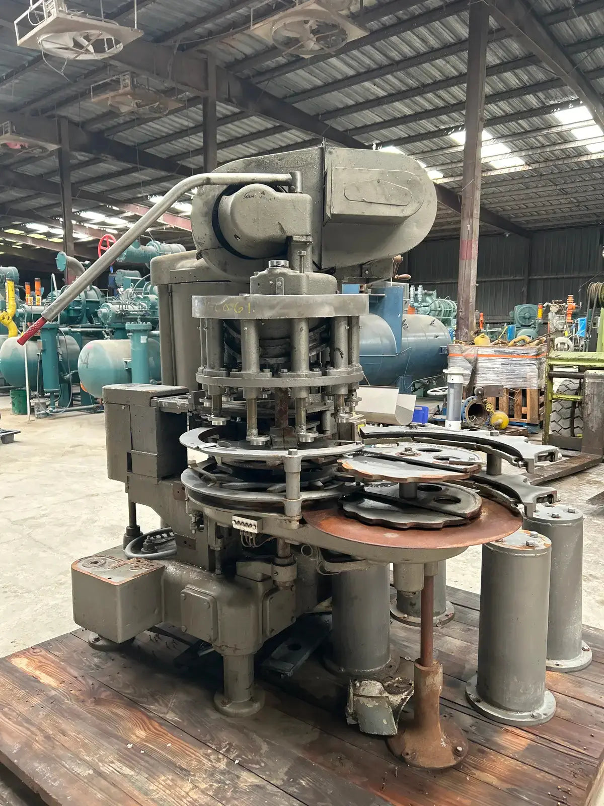 Angelus Sanitary Can Machine Co. Can Seamer, Model 40P DF Seamer. Serial 4991559. Previously rebuilt by Sheppard Machine Co. in 1995, S/N: 4991559. Last ran 204 x 708 cans (2.25 in. x 7.5 in. tall), composite can for refrigerated dough. Note on machine mentions max 180 cans per minute. Overall dimensions: 6.5 ft. x 5 ft. x 6.5 ft. High.