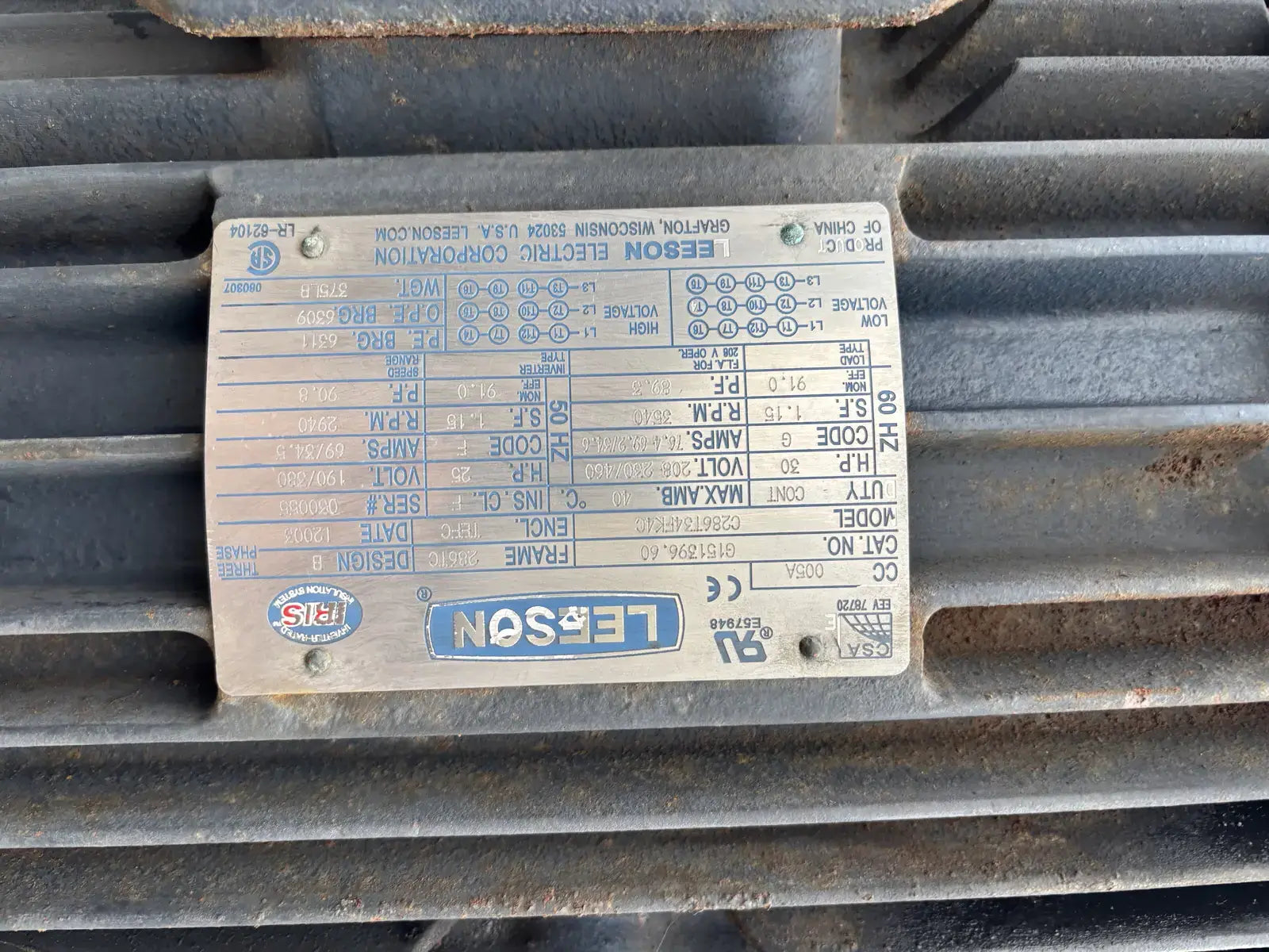 - If Multiple Motors, Motor Descriptions vs specs: (2) Pump Motors - 30HP/230/460Volt/3540RPM/76.4-69.2Amps.