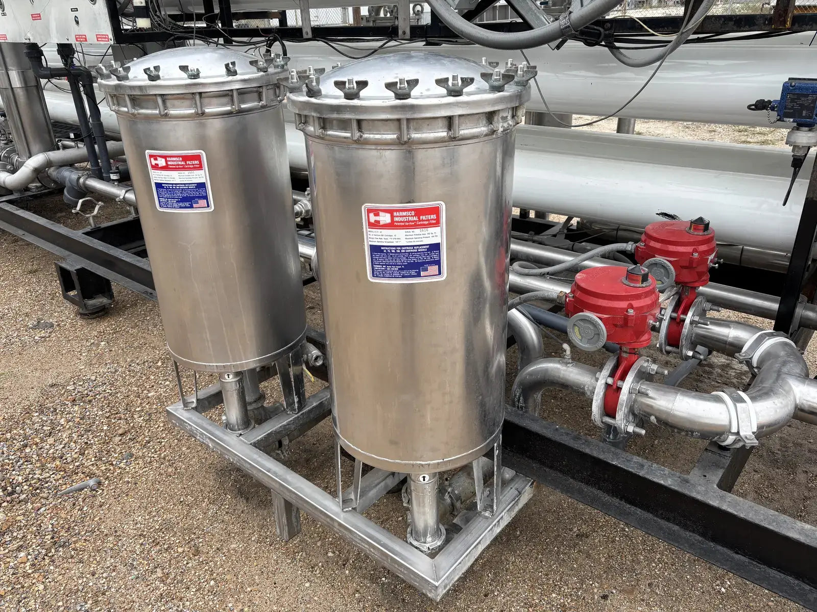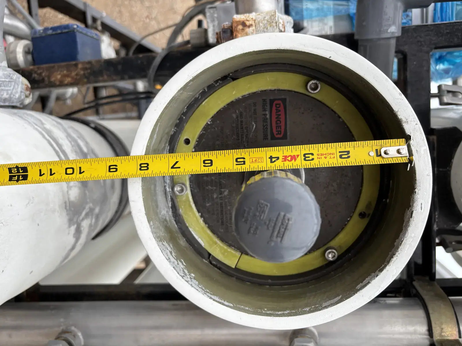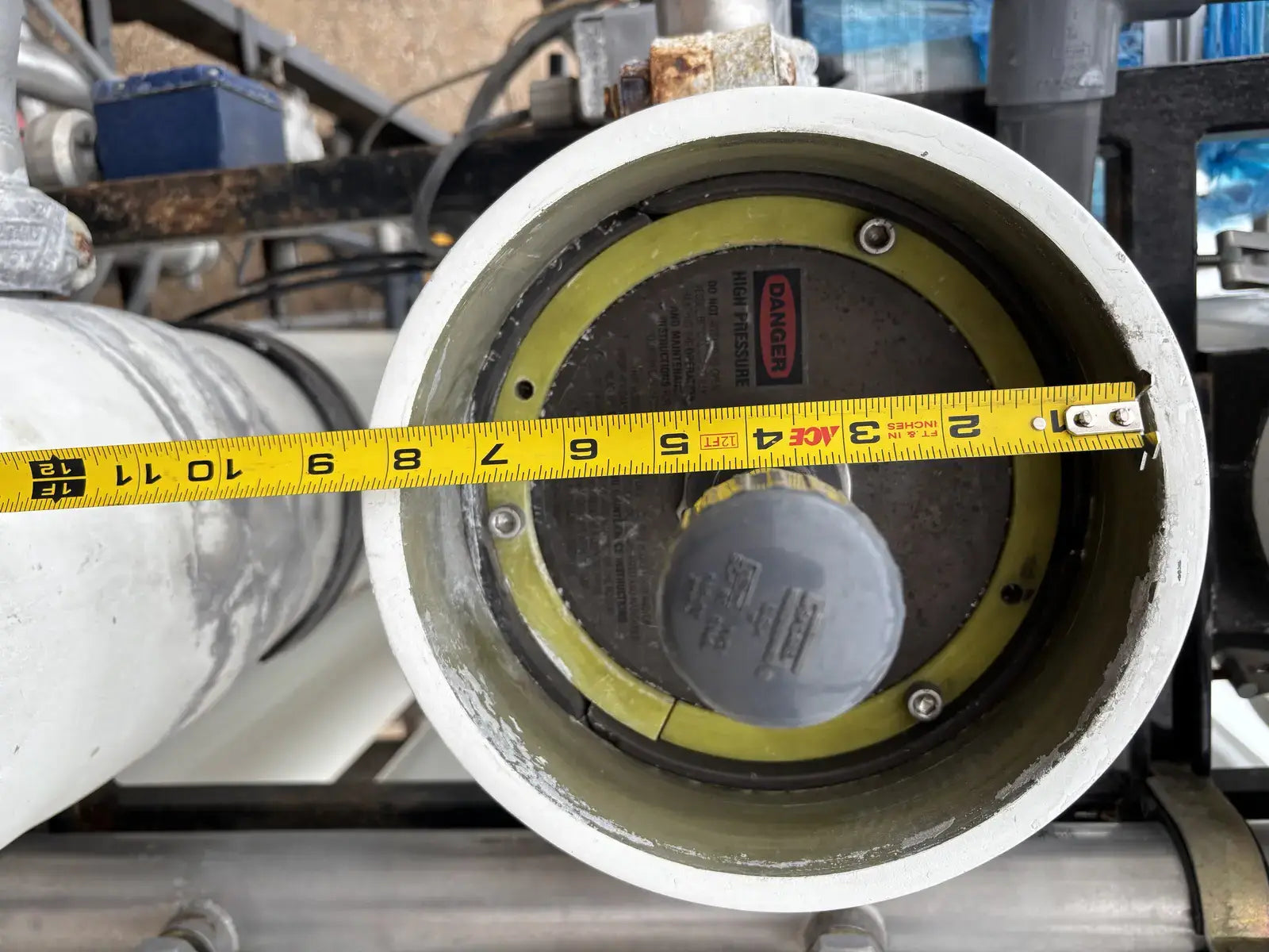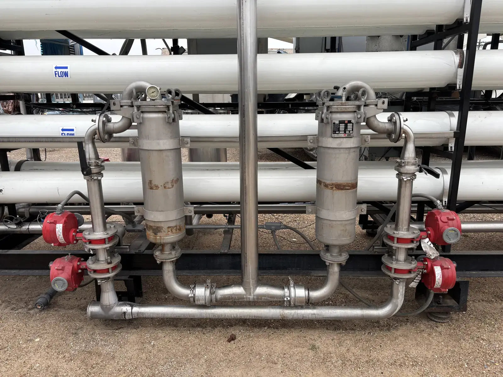 Applied Membranes Inc 2 Stage Reverse Osmosis System. Membrane Bank Dimensions: 8 in. dia x 256 in. L.