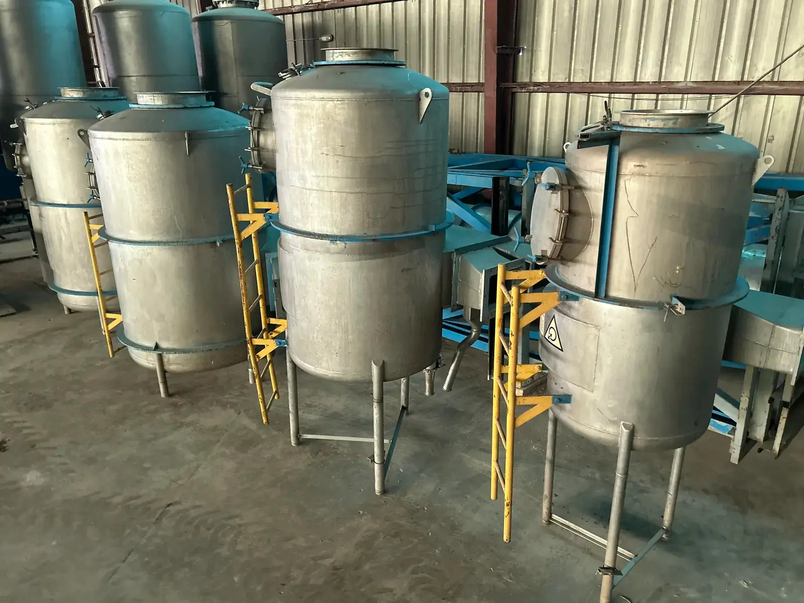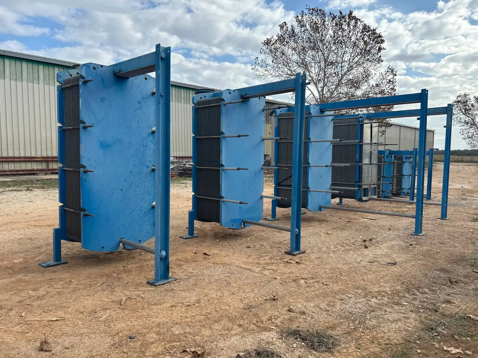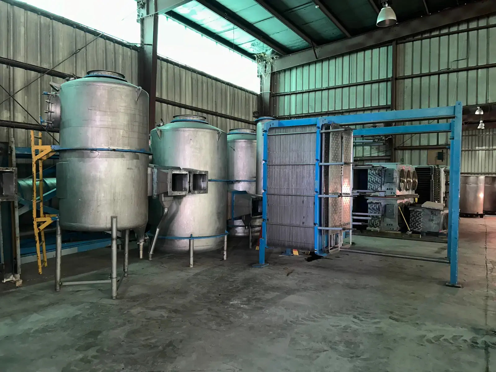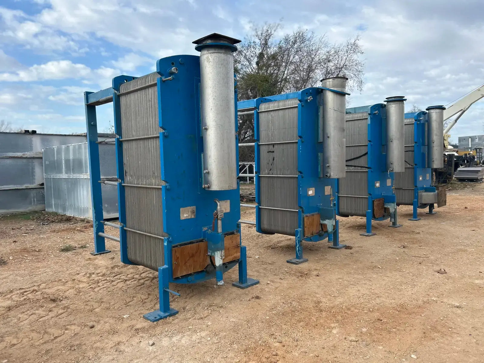 - Evaporator Components Included: (1) 1st Effect: Frame Size 3:1, 53 PU'S w/60" diameter reversed dish snail shell separator; (2) 2nd Effect: Frame Size 1:2, 28 PU'S w/36" diameter reversed dish snail shell separator; (3) 3rd Effect: 3A Stage and 3B Stage in Series flow w/common frame and separator: Frame Size 2:2, 44 PU'S w/48" diameter reversed dish snail shell separator; (4) 4th Effect: 4A Stage and 4B Stage in Series flow w/common frame and separator: Frame Size 3:1, 51 PU'S w/60" diameter reversed dish snail shell separator; (5) One R56 APV Pre-Heater Plate Heat Exchanger; (6) Barometric Condenser; (7) Feed Balance Tanks; (8) R56 APV Regen/Cooler Plate Heat Exchanger; (9) Pasteurizer; (10) Barometric Vacuum Pump; (11) Necessary Pumps, Piping, Vapor Ducts, etc.