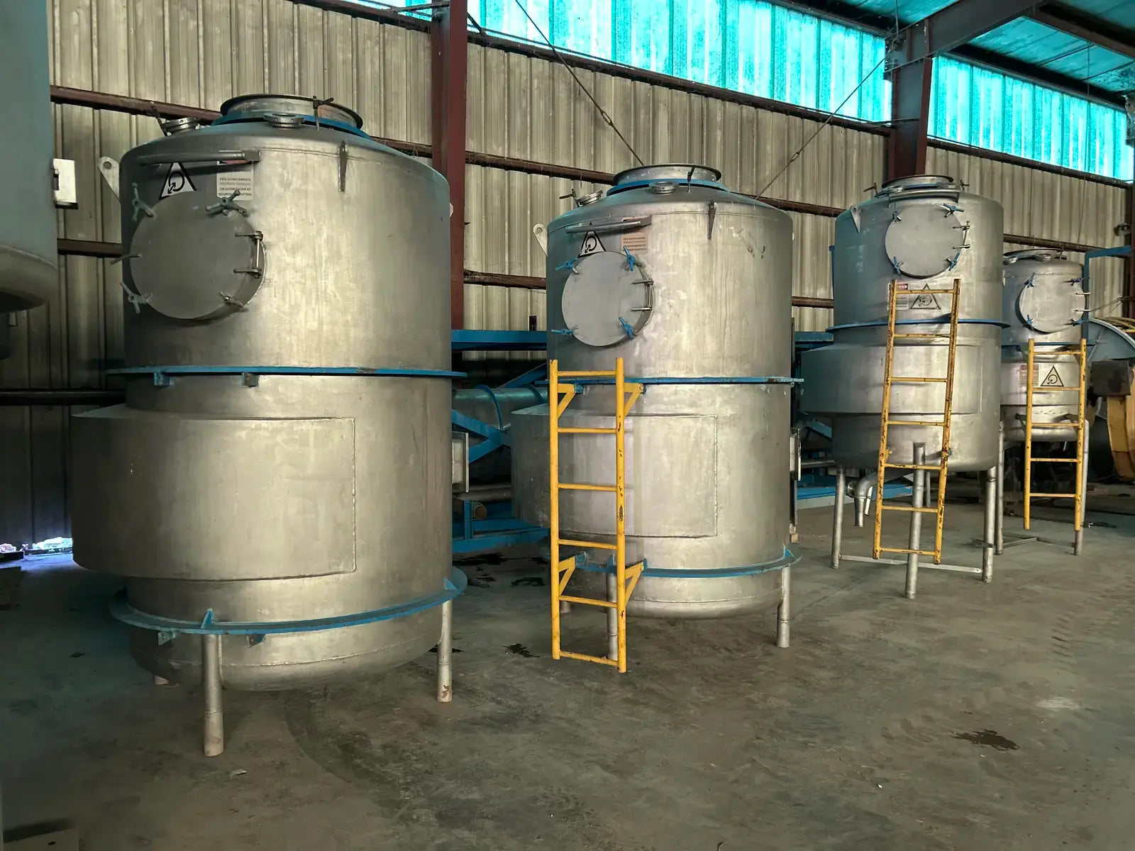 APV Quadruple Effect, Six Stage Evaporator with Related Controls. Originally designed for Citrus Pectin. Feed Rate 48,000 LBS/HR, Feed Concentration 0.6% Total Solids, Feed Temperature: 130°F/54.4°F, Feed Temperature to Evaporator 190°F/ 88°F, Product Rate 12,000 lbs/hr, Product Concentration 2.4%, Product Temperature 82°F/26.7°F, Evaporation Rate 36,000 lbs/hr.