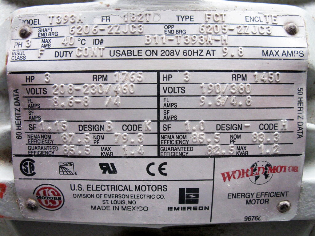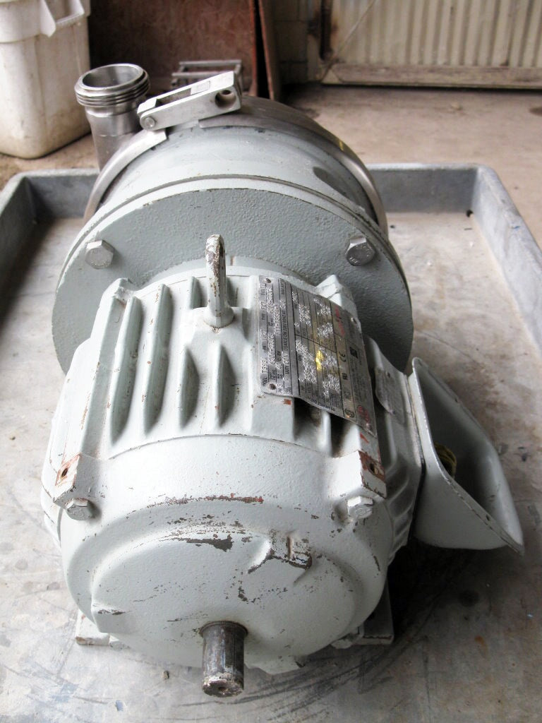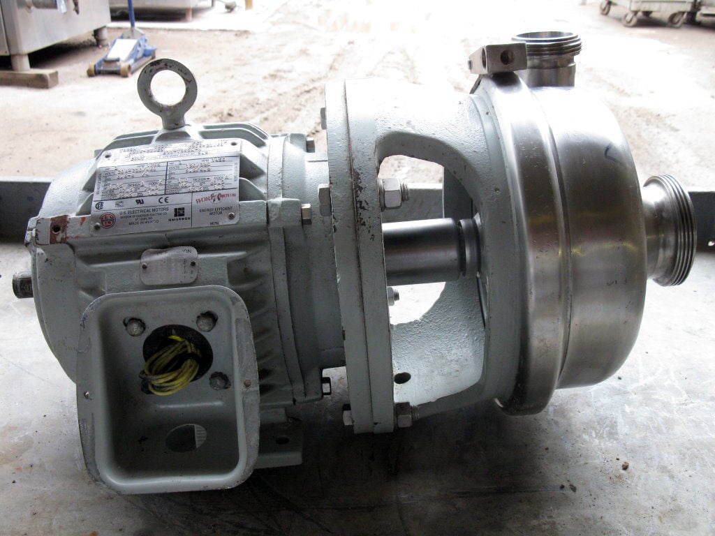 APV Puma Sanitary Centrifugal Pump. Capacity 85 gpm. Impeller diameter: 5-1/2 in. Discuss with salesperson your process and product to determine if this pump should handle your specific duty. U.S. Electrical motor: 3 Hp, 1765 Rpm, 208-230/460 V, 8.6-8/4, 60 Hz, 3 Phase. Inlet: (1) 3 in. dia. ACME fitting. Outlet: (1) 2 in. dia. ACME fitting. Overall dimensions: 1 ft. 9-1/2 in. L x 1 ft. 2 in. W x 11-1/2 in. H.