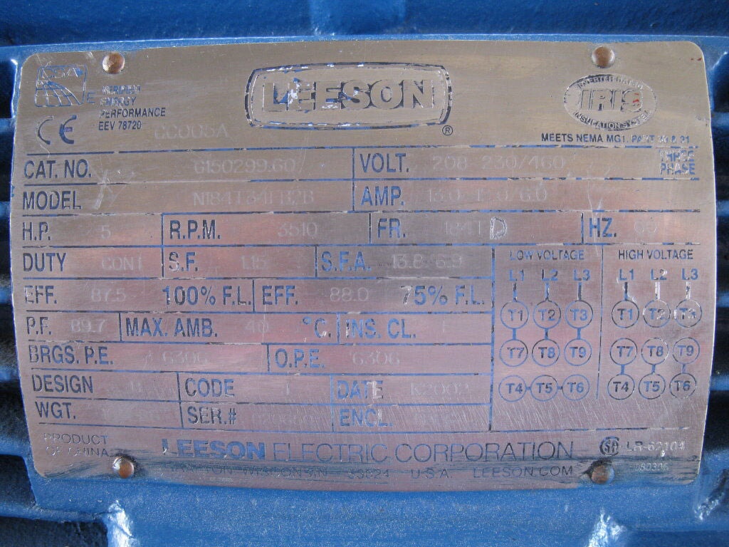 - Motor Manufacturer: Leeson