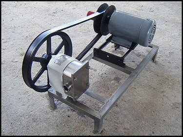 APV Crepaco Positive Displacement Pump. Model: 3R. S/N: 19063. (2) 4 in. rotors. Pulleys: (1) 10 in. driver,(1) 1 ft. 4 in. driven. Inlet/outlet: (2) 1-1/2 in. ACME. Overall dimensions: 3 ft. 10 in. L x 2 ft. W x 1 ft. 9 in. H.(ACN42).