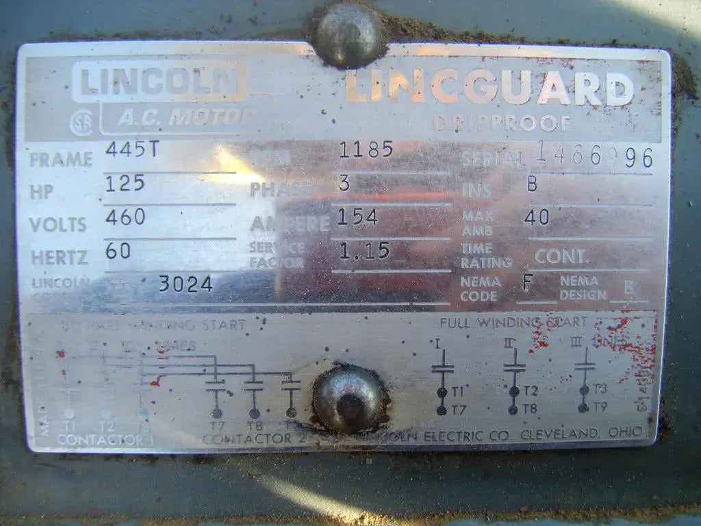 - If Multiple Motors, Motor Descriptions vs specs: (1) 125 hp Lincoln motor and (1) 1 hp Dayton motor